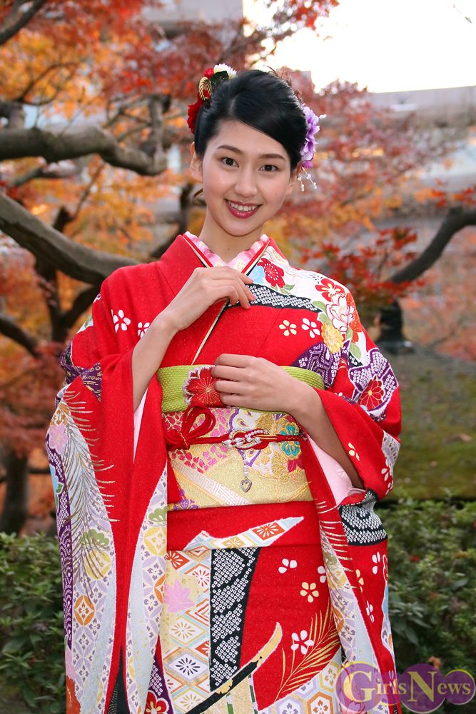 「第1回ミス美しい20代コンテスト」で4万通を超える応募の中から見事グランプリに選ばれ、芸能界入りした是永瞳さん。スラリとした着物が似合うスタイルもさることながら、空手が得意で2段の腕前を持つという意外な一面も持つ。将来は女優を目指すという是永さんが新年にかける抱負などを語った。