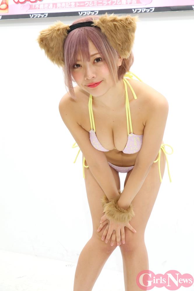 この日は、戌年にちなんで、犬の耳を付けて登場した藤田さんは、髪の色もすっかりイメージチェンジ。「気分転換に髪の色を変えようと思ったんですが、とりあえず、なりたい色にするためにブリーチで色を抜いた感じです。前にソフマップでイベントしたときに、“頭がプリン”って、言われたことがあったので、今度はなんて言われるか楽しみです」と、他人事のように笑っていた。
