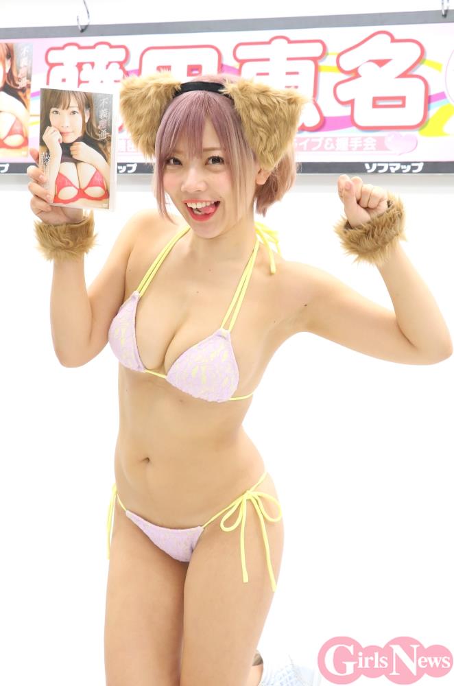 “今1番脱げるシンガーソングライター”のキャッチフレーズで注目の藤田恵名が14日、最新イメージDVD「不義密通」の発売記念イベントを、秋葉原・ソフマップAKIBA4号館で開催した。