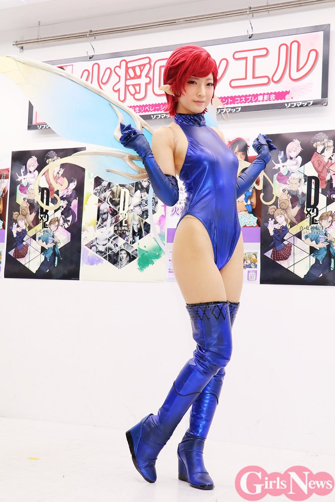 衣装については「デザインはシンプルですけれど、色にこだわっていて、角度によって色が変わって見えます。羽が大きいので重たそうに見えるんですけど、すごく軽くてクオリティーが高い。ここまで長いブーツは履いたことがなかったので新鮮です。髪型のセッティングが大変でしたが、すごく大好きなキャラクターだったので、コスプレできて嬉しいです」と話した。