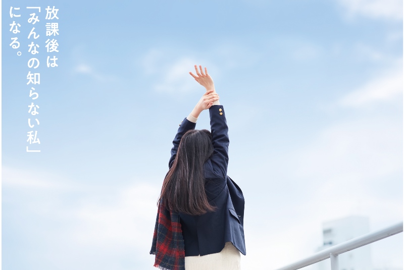 現在、原宿駅竹下口をジャックしている“謎の女子高生”のポスター。「放課後はみんなの知らない私になる」といったキャッチコピーで、学校とは違う自分を見つけるチャンスということで、オーディションへの応募を呼びかける。久間田さんはその「放課後レプロ部」の部長としてイメージモデルを務めている。
