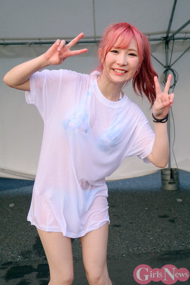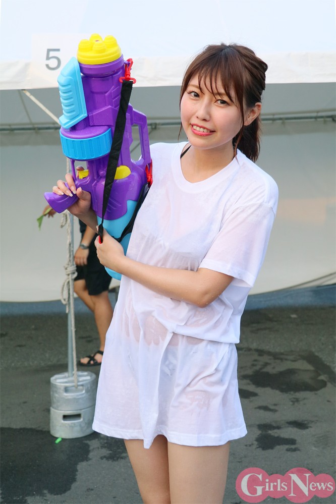 水着のアイドルとファンの2shotチェキは、朝早くから長い列が並ぶほどで、人気のアイドルは早々に参加券がなくなってしまうほどの盛況ぶりだった。さらに、各日の最終部に行なわれる「ドキッ 透けちゃう水鉄砲大会」は、アイドルをファンが水鉄砲でビショビショにしてしまうという企画。透けてピッタリと張り付いたセクシーなTシャツ姿にファンは大興奮だった。アイドルも負けじと水を掛け合って応戦し、ファンと一緒にビショ濡れになりながらも、笑顔いっぱいで歓声をあげていた。