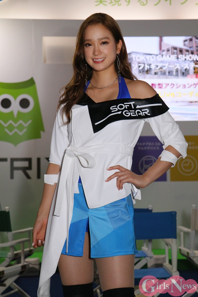 「JAS水着キャンペーンガール2018」などで活躍中の相沢菜々子さんが、千葉・幕張メッセで開催中の「東京ゲームショウ2018」(20日~23日開催)でソフトギアブースに参加している。