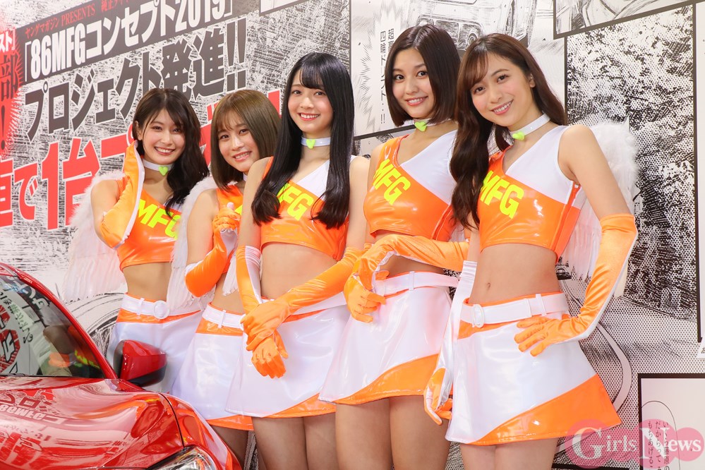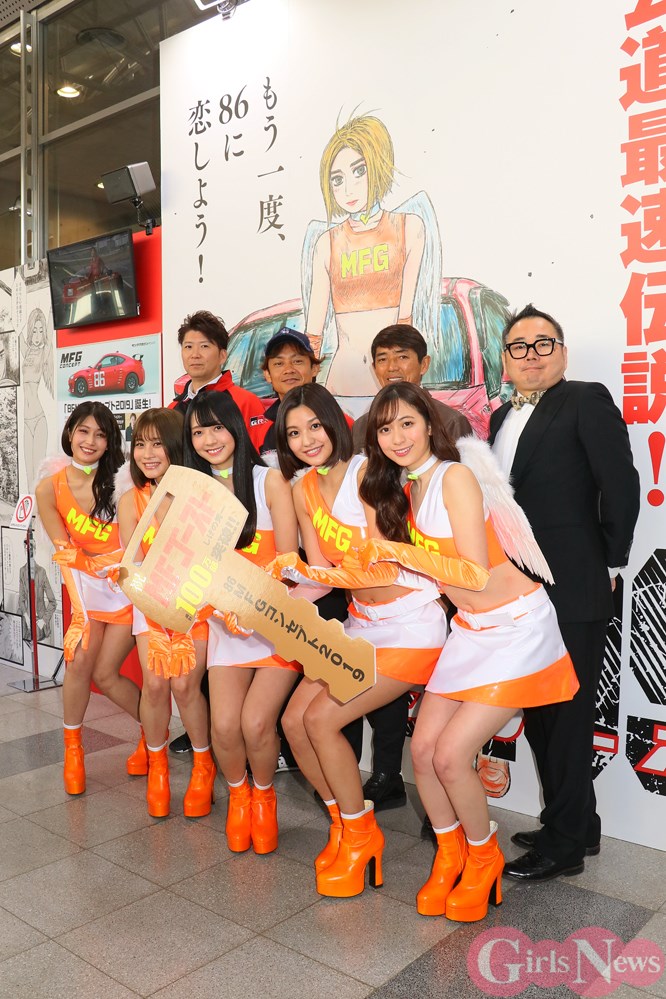 『頭文字D』で知られるしげの秀一氏による最新モータースポーツ漫画『MFゴースト』(講談社)ブースでは、作品に登場する「MFGエンジェルス」をイメージしたレースクイーンチームが登場。日本レースクイーン大賞2018・新人賞グランプリの林ゆめ、ミスマガジン2018ベスト16の農海姫夏に加え、新たに加入した「夢みるアドレセンス」の山口はのん、日テレジェニック2015の橘花凛、「週刊プレイボーイ」で2018年のグラビア新人賞を獲った沢すみれがフォトセッションを行なった。