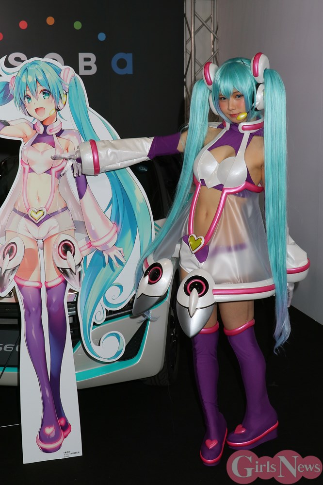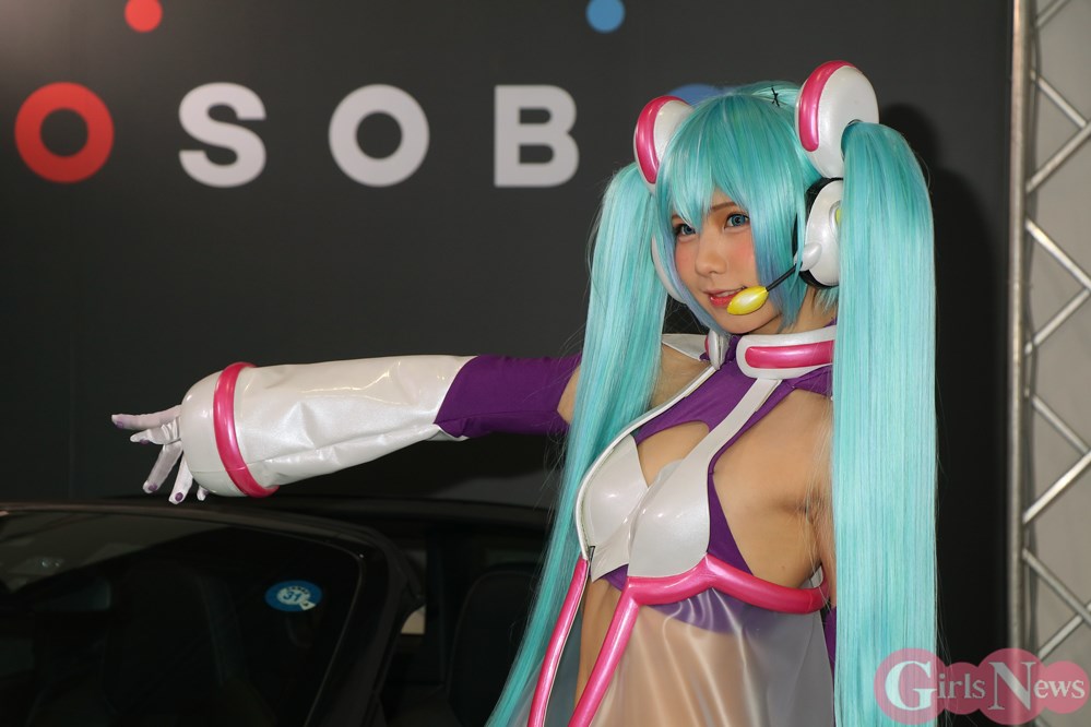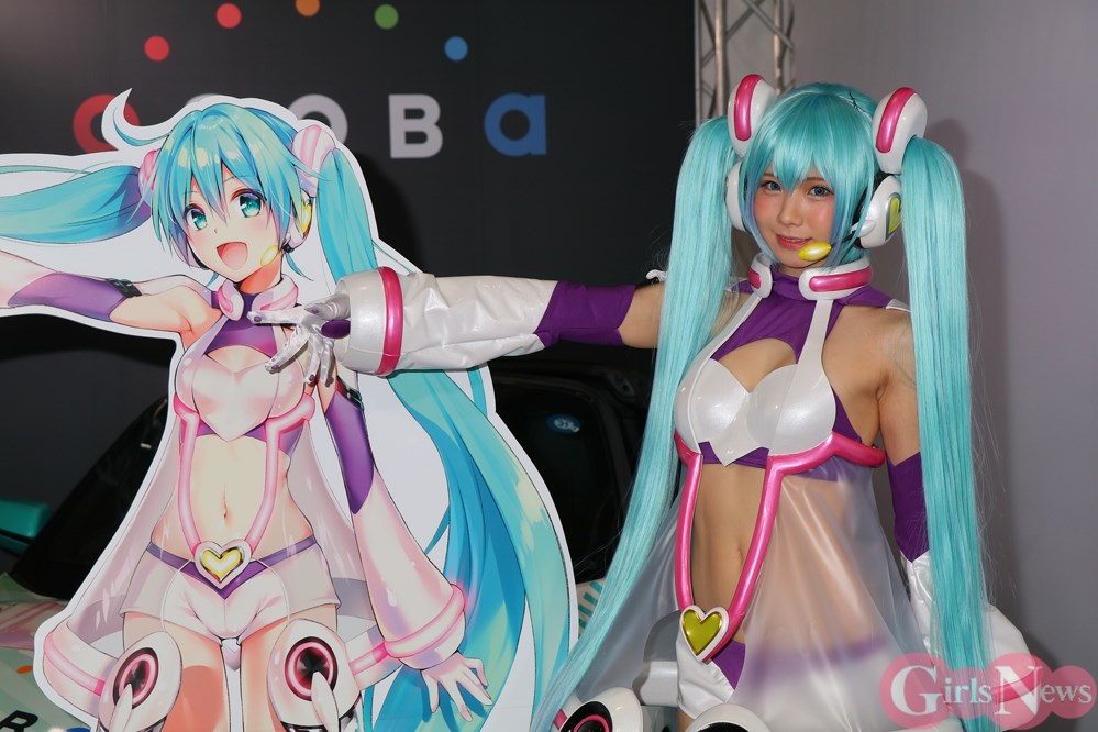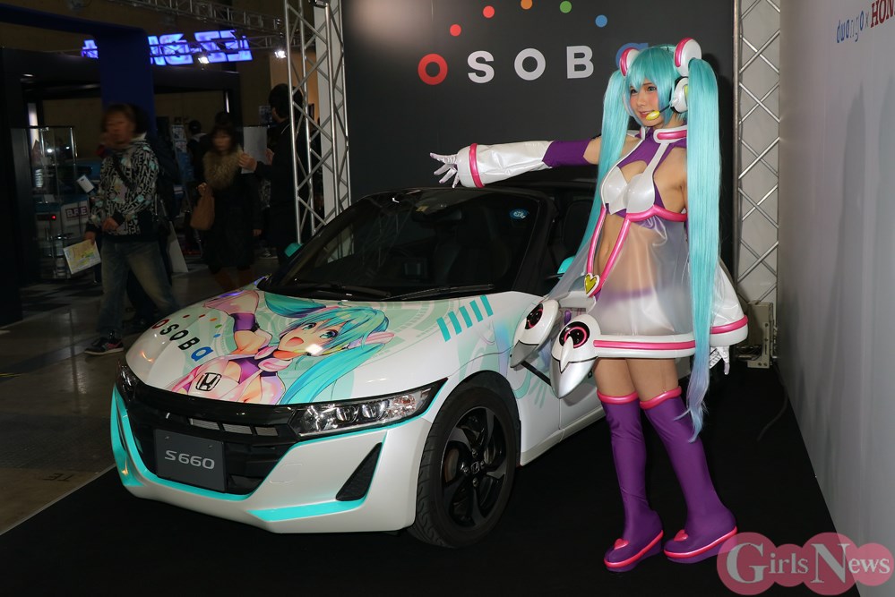 また、「dowango×Honda」ブースには人気コスプレーヤーのえなこさんも出演。車に合わせてしゃべるスマホアプリ「osoba」とコラボした初音ミクのラッピングカーと共に連日コスプレ撮影会を開催する。