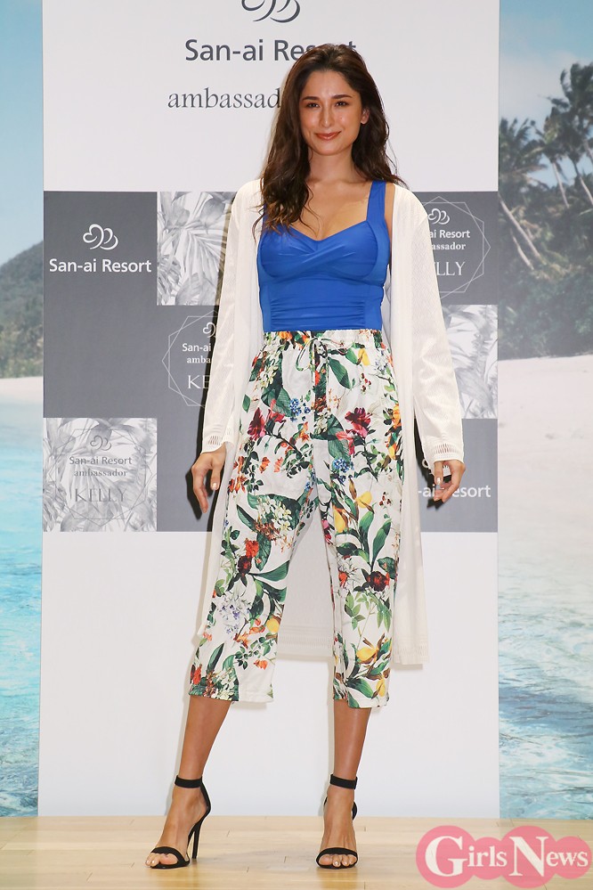 三愛水着イメージガールにに代わってブランドイメージをアピールする「San-ai Resort ambassader」に、ブラジル出身のモデル・Kelly(ケリー)さんが選ばれ、20日に行われた記者発表会に出席した。