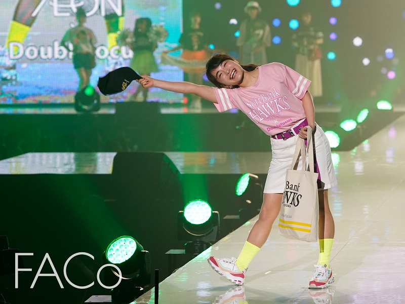 福田さんは、ファッションブランド「marun..」「RVCA」のステージのほか、AEONの協賛ステージにスペシャルゲストとして登場。福岡ソフトバンクホークスのピンク色のTシャツにホワイトのデニムスカートという出で立ちで、元気いっぱいのウォーキングと“めいめいスマイル”で会場をわかせた。