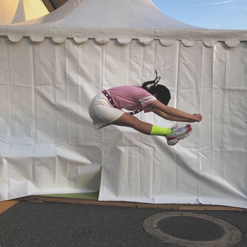 福田さんは、自身のInstagramにステージ裏のオフショットも公開。チアリーディングのポーズを笑顔で決めながらカメラ目線で可愛らしく写っているだけでなく、長座の状態でジャンプする“パイクジャンプ”も披露。チアリーディングで培った柔軟性を活かした技にファンを感心させた。