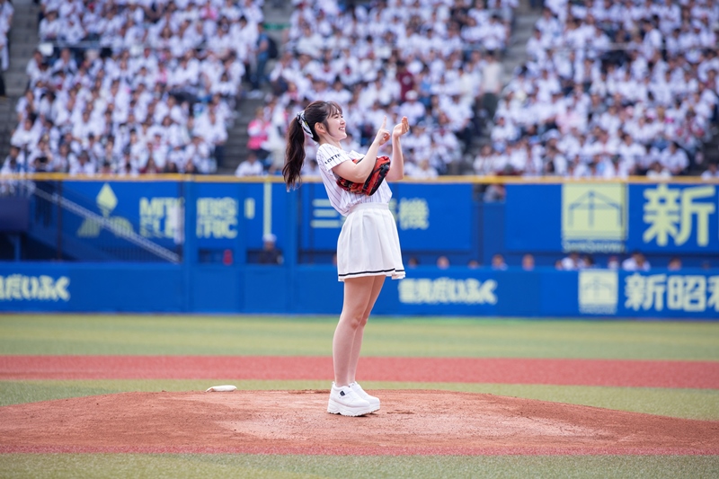 この日の点数を問われると「50点くらい!」と控えめな答え。そして「いろいろな人の始球式の動画を見てきたので、 それに比べるとまだまだだと思っています。 ここまでくるとノーバウンドで届かせたいので、 またチャンスがあったら投げてみたいです!」と意気込んだ。