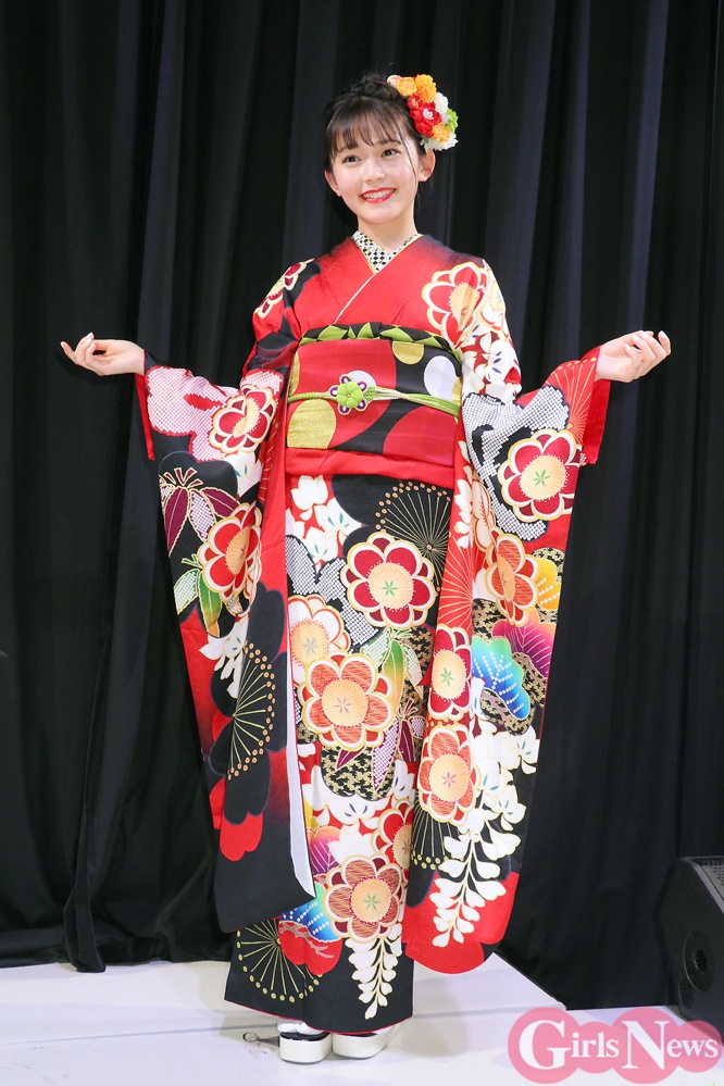 ファッション誌「Seventeen」専属モデルで女優の久間田琳加さんが24日、所属するレプロエンタテインメントのモデルらが出演するイベント「LesPros Teens Festival ! 2019」(レプティーンフェス)に参加し、久間田さんが初めてデザインした振り袖が披露された。