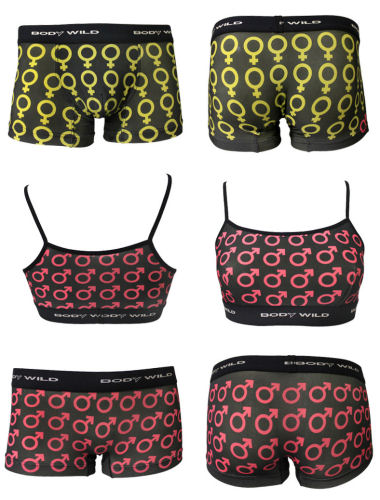木下ココさんは「下着もお揃い! なんてかわいいよね。ペアで着て欲しいな」、大桑マイミさんは「男は男である事実、女は女である証をシンボル柄にしました。デニムスタイルに合うパンツだと思います!! 是非!カップルで同じ日に履いて欲しいと思います。」
