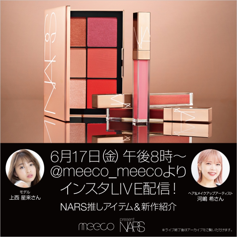モデルの上西星来さんが、17日20時より、ヘア&メイクアップアーティスト 河嶋希さんとともに、コスメブランド・NARSのインスタライブに出演。人気のリキッドファンデーション「ライトリフレクティングファンデ―ション」と10日発売「アフターグローコレクション」を紹介。 商品を実際に試しながら商品の魅力や使い方などを配信する予定だ。