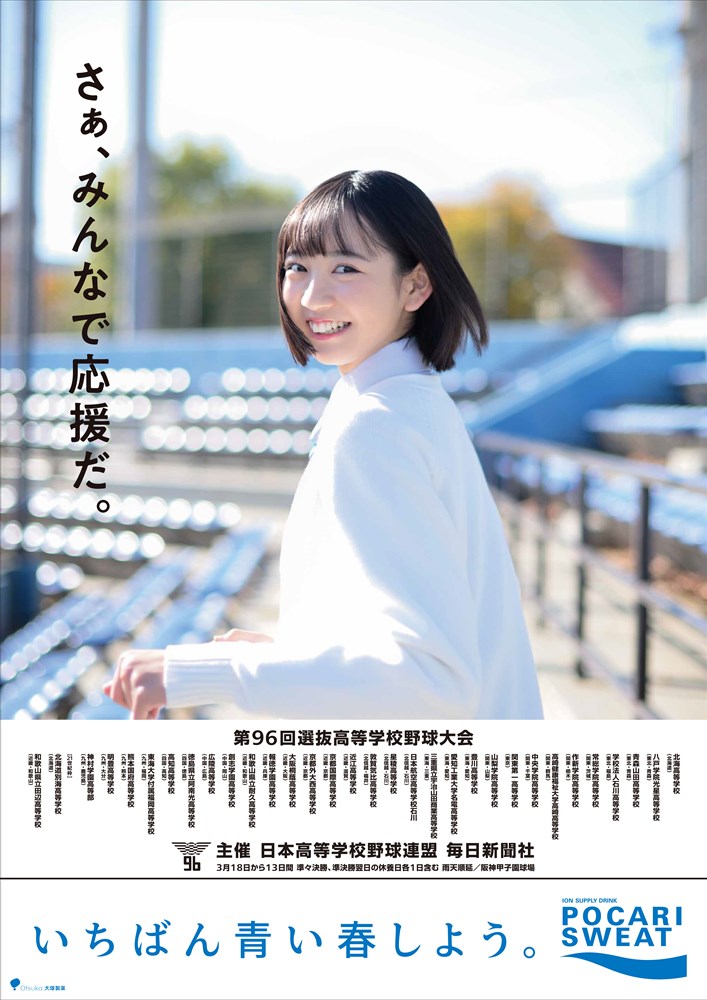 ポスターは、現在16歳の近藤結良さんが球場で応援を呼びかける様子を表現。近藤さんはお披露目されたポスターと並んで、「センバツ応援イメージキャラクターに選んでいただいて最初は驚いたんですけども、実際に完成したポスターを見て、実感と嬉しさがこみ上げてきました」と喜びの声をあげた。ポスターの印象を「すごく青春だなって感じがします。部活のマネージャーにすごく憧れていたので、このポスターでそんな雰囲気になれて幸せです」とニッコリ。