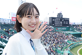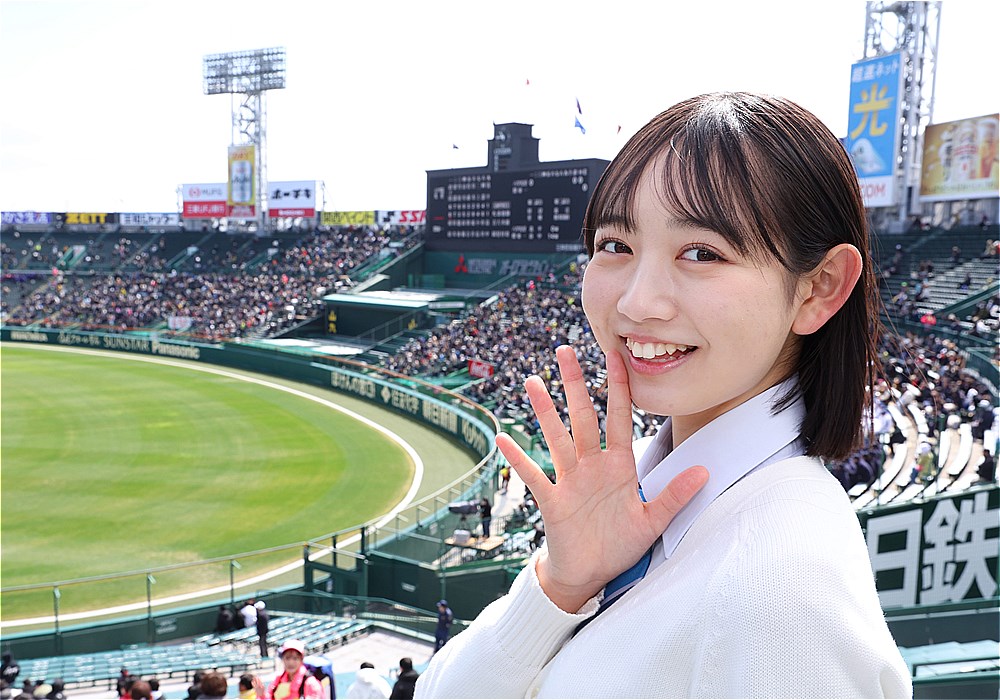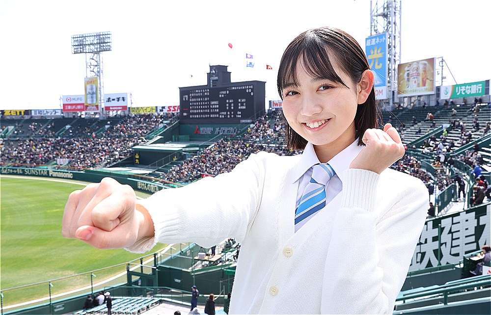 甲子園の高校球児を見て、女優の目標や夢と照らし合わせ、「今日、グランドにいる球児一人一人の表情を見て、夢に向かって皆がんばっていると思いました。皆からパワーをもらったので、私も女優として堂々と表舞台に出られようにがんばりたいです。女優として憧れているのは小芝風花さんです。作品ごとに違う表情で演技していて素晴らしいと思います。今後は、制服を着られる期間が限られているので、学園もののドラマに出演したいです」と抱負を語った。