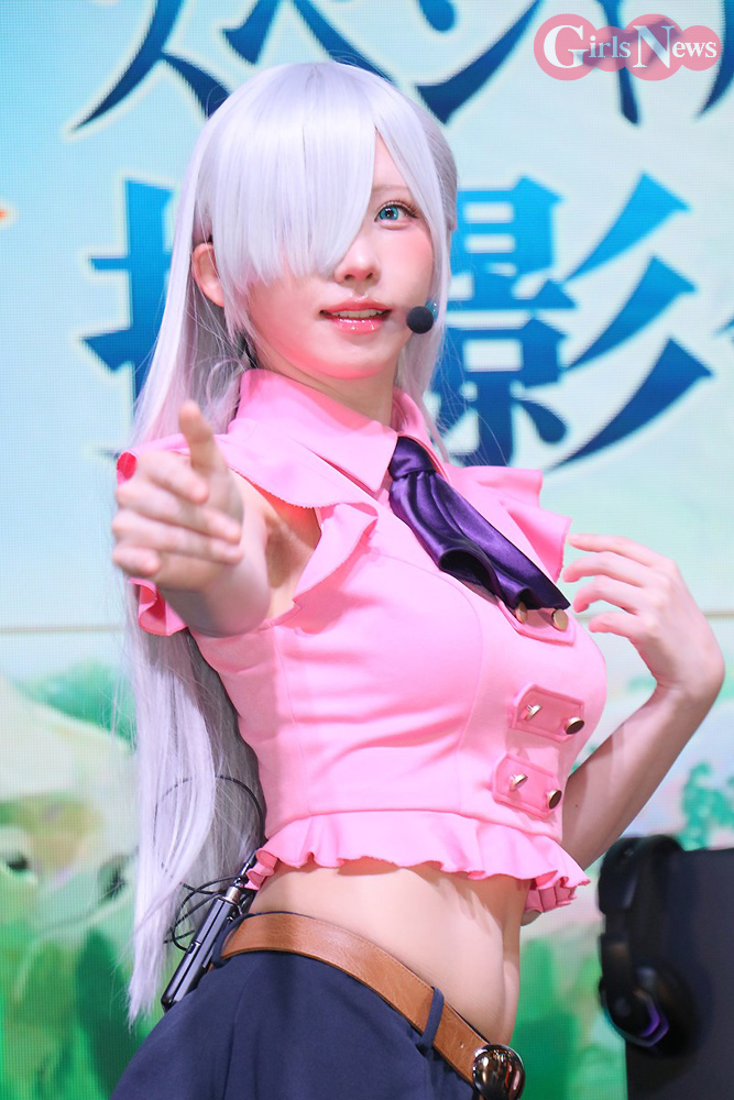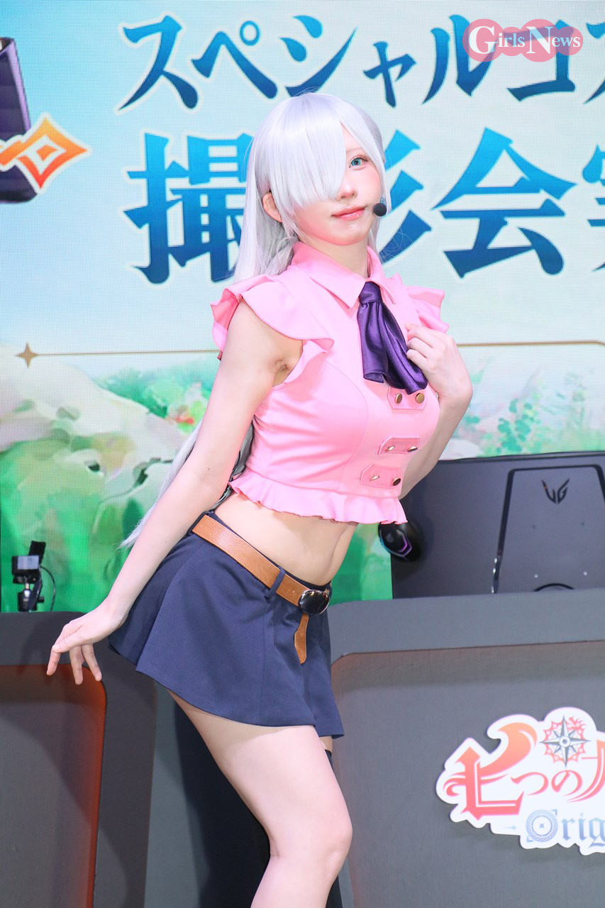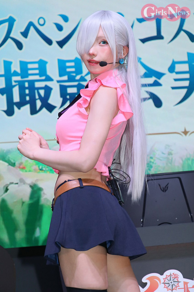 えなこは、エリザベスのコスプレで出演。「エリザベスのスタイルに近づけるようにトップスの丈にこだわりました」とコスチュームのポイントを明かした。篠崎こころはディアンヌの衣装について「お尻のラインがよく見えるようにミリ単位でこだわりました」と解説。南あみはマーリンの衣装を「原作はもっとセクシーですが、ちょっとアレンジされてます。襟のファーが気に入ってます」とコメントした。
