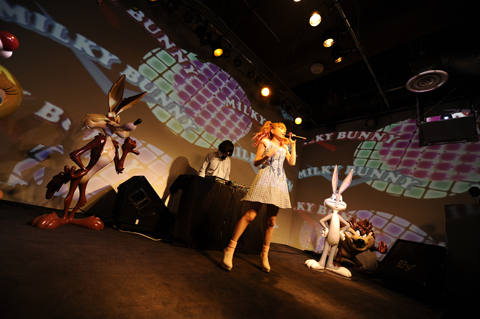 また今回コラボレーションで話題となったバッグス・バニーを含むルーニー・チューンズのフィギュアが飾ら れた可愛いステージに配し普段のMilky Bunnyとはひと味違った演出で盛り上げると、続いてはトークセッションへ。