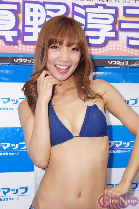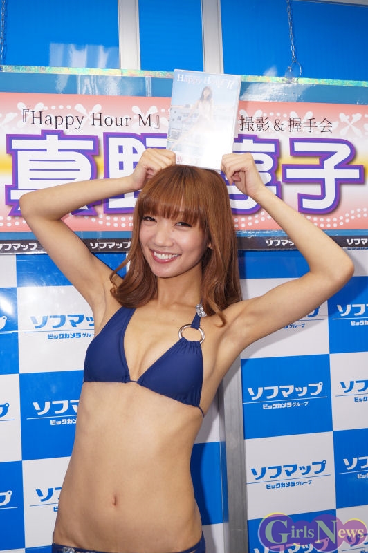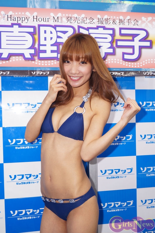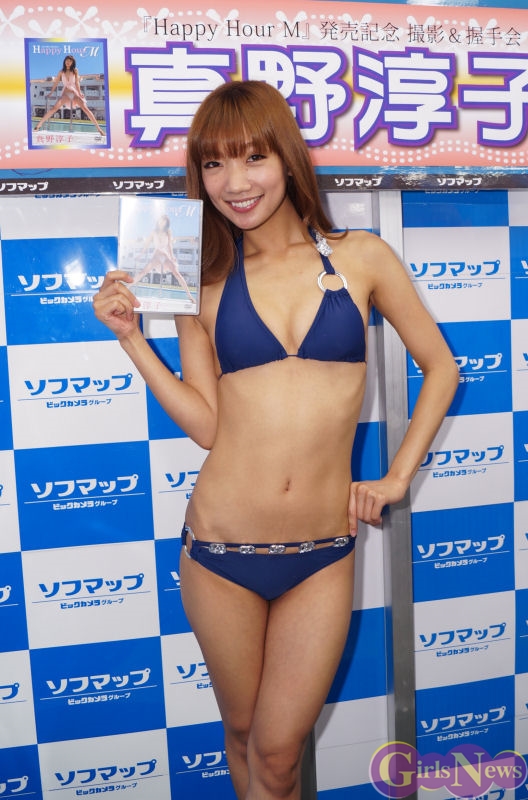 5月26日、モデルの真野淳子さんの水着イメージDVD「Happy Hour M」(イーネット・フロンティア)の発売を記念し、秋葉原のソフマップアミューズメント館にてイベントが行われた。