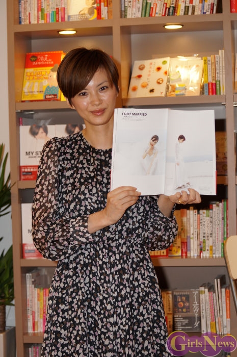 今宿麻美さんは「今まで私服をメインというスタイルブックは無かったので、今回挑戦してみました。3月に入籍しまして、ウェディングドレスを披露しています。この本用に撮影しました。今回はアンティークなドレスを着ています。」と内容を紹介。