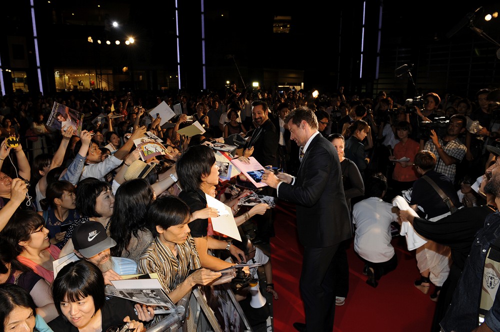 開口一番ヒューは「ワタシハ、ニホンニコラレテ、トテモウレシイデス!」とコメントし、いきなり会場を沸かせた。「この作品は、ちょうど1年前に日本で撮影していました。日本のエキストラやスタッフはとても良くしてくれました。この作品の成功は皆さんのおかげです。今回は福山市の鞆の浦で撮影したのですが、その縁でウルヴァリンが福山市の観光大使に選ばれました!」とコメント。会場からは惜しみない称賛が贈られた。