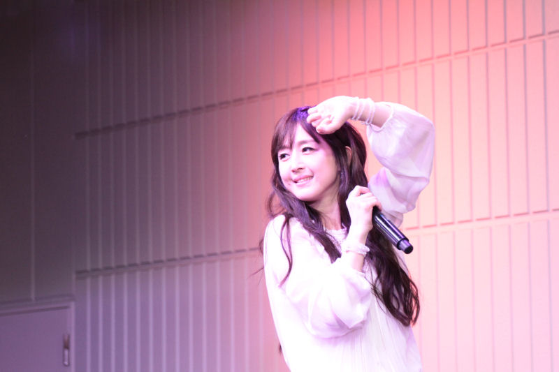 ステージに登場し、緊張した面持ちで久しぶりにファンと対面し挨拶し、“憧れの存在”とする角松敏生さん作の「Foryou」でミニライブがスタート。
