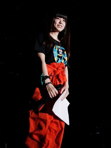 ライブ開始直前、開演を心待ちにしているファンの前に、春奈るながスタッフTシャツ姿で登場。なんと、出演者が前説を担当するというサプライズで幕を開けたこのイベント。会場は一気に温かい空気に満たされた。実は、イベントの前夜祭として8月に放送された公式ニコ生番組内で3人がゲームを行い、春奈るなが最下位となったため、罰ゲームとして前説を担当することになったのだが、初体験となる重要な役目を終えた春奈は「ちょっと癖になりそうです」と、笑顔でコメントしていた。