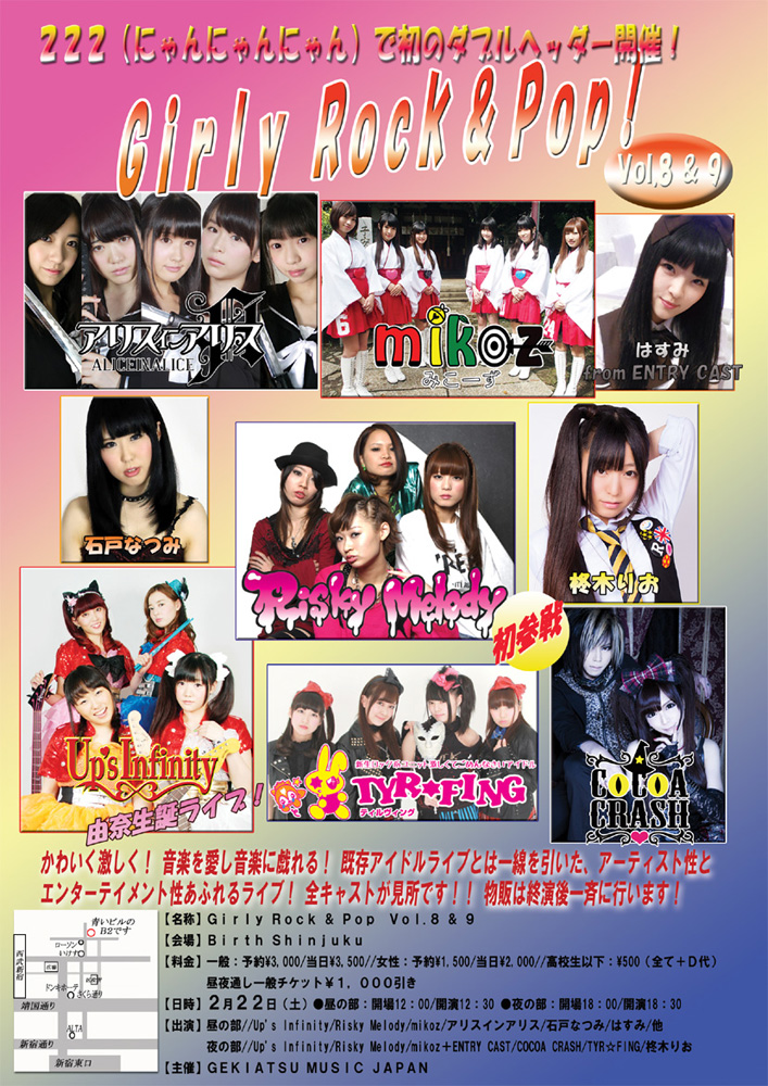 2月22日(土)新宿にて、個性・特徴が明確なアイドルで、ア―ティスト性とエンターテイメント性の高いライブを目指す、好評「Girly Rock & Pop」ライブが、初めて昼の部、夜の部と、ダブルヘッダーで開催される。
