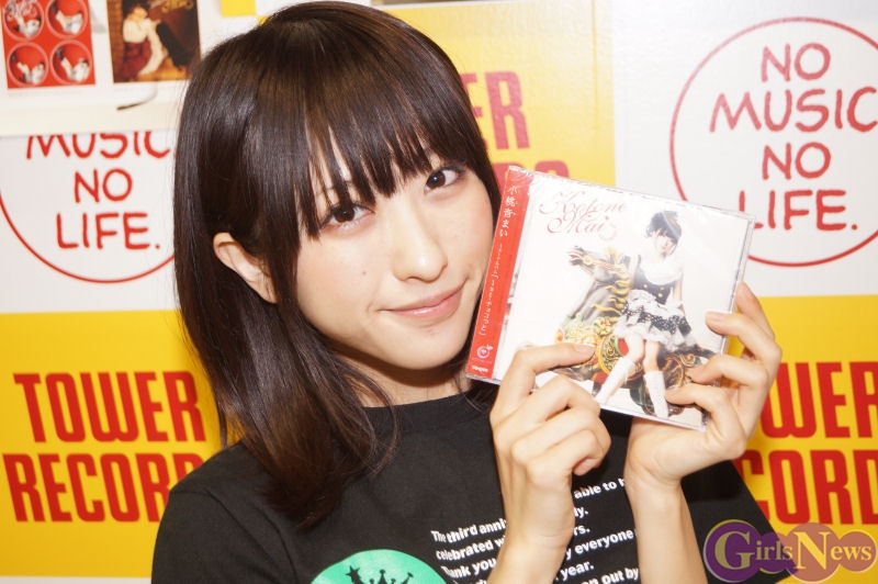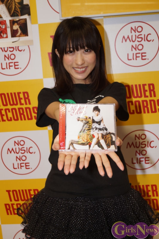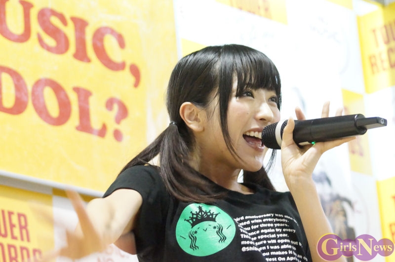 この日は夜9時からのイベント開始ということで、お仕事帰りにファンが多数駆けつけイベントスペースは瞬く間に超満員。アルバム収録曲の「キラリ☆」や「Charlotte」など6曲を披露しファンを熱狂。「なのです☆」の曲ではタワーレコード新宿店7Fのイベントスペースをまいにゃと一緒にファンが右に左に民族大移動し盛り上がりました。