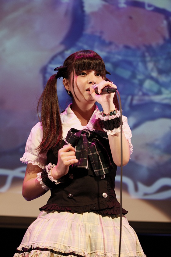 イベント終盤、黒ぶちメガネを装着した春奈るなが「〈物語〉シリーズに登場する羽川翼ちゃんが前のシリーズではメガネをかけていたので、少しでも近付きたくてかけてみました!ツインテールは真宵ちゃんとお揃いです!今日来て頂いた皆さんに感謝の気持ちを込めて新曲を初披露したいと思います!」というMCとともに、新曲「アイヲウタエ」をパフォーマンス。話題の楽曲を誰よりも早く聴いた観客たちは大喝采で応えた。