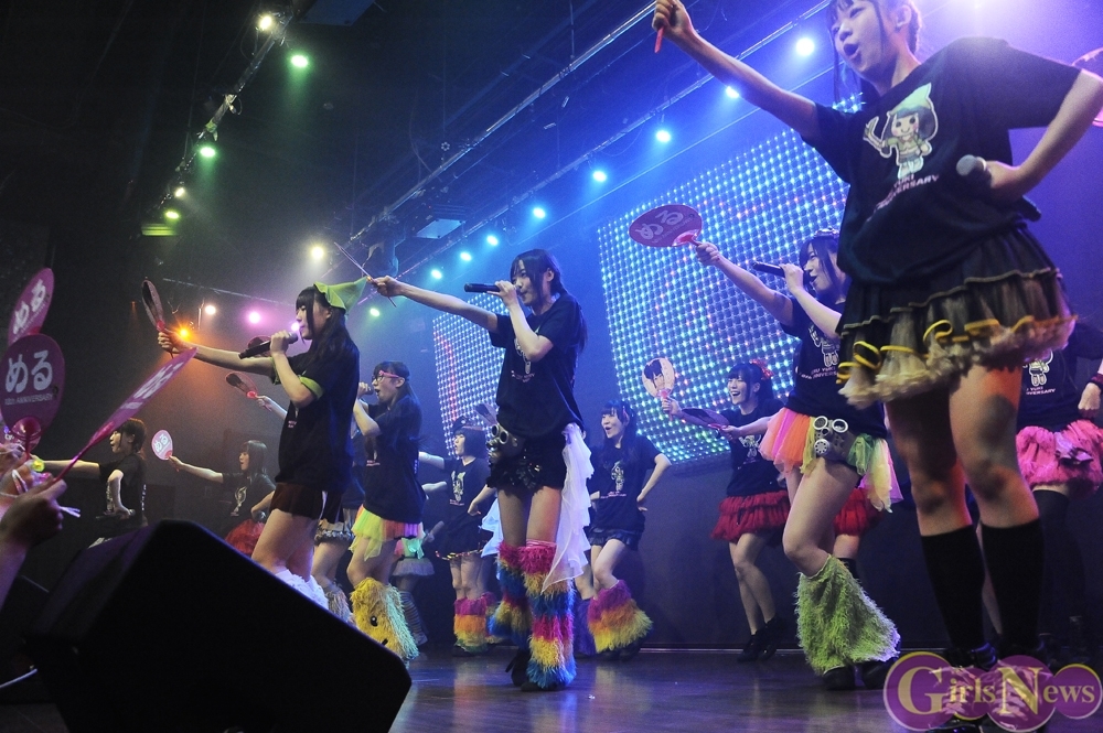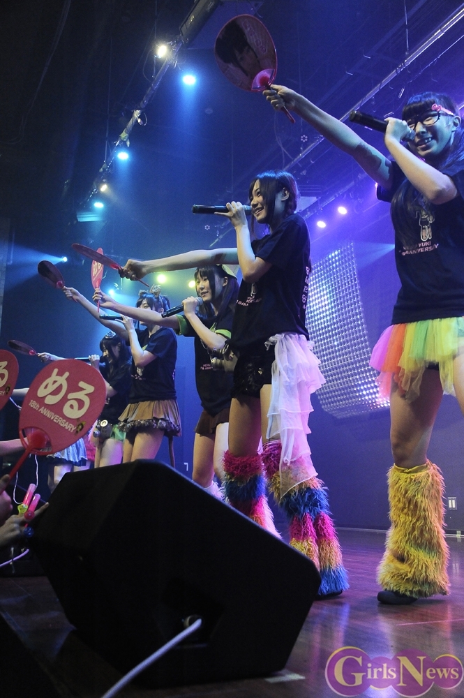 この日、結城めるさんがかつて所属していたほわいと☆milkの「下呂っこ☆きゅるん」を現 ほわいと☆milkのメンバーとOZのメンバーとで披露。するとアリス十番やスチームガールズ、ぱー研!、スライムガールズもステージに集まり大盛り上がり。