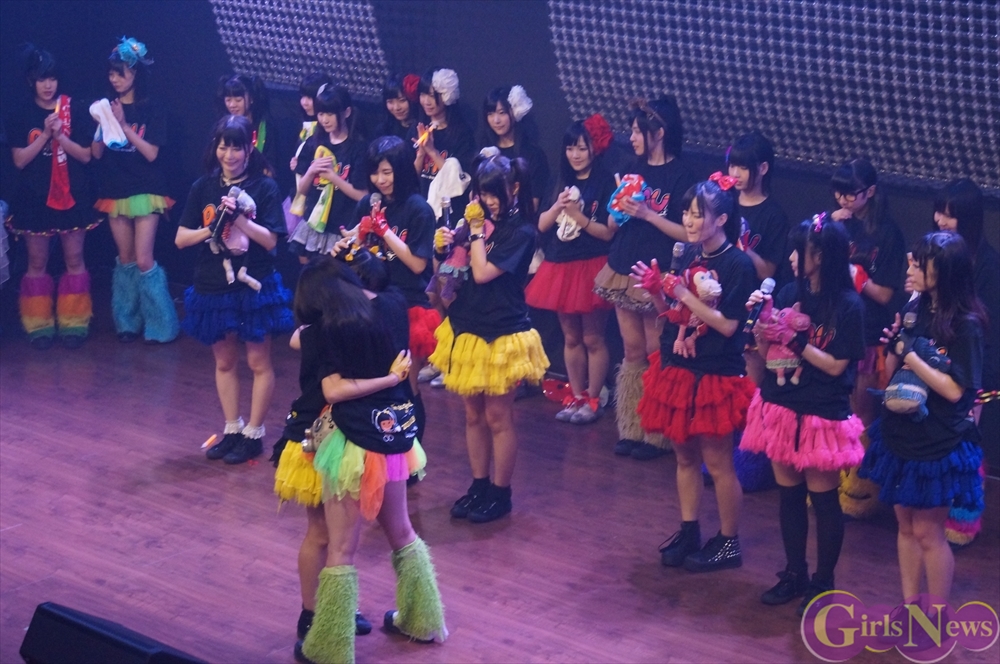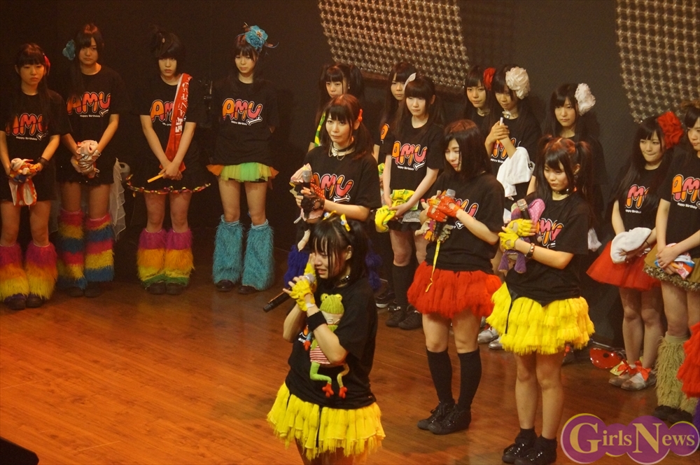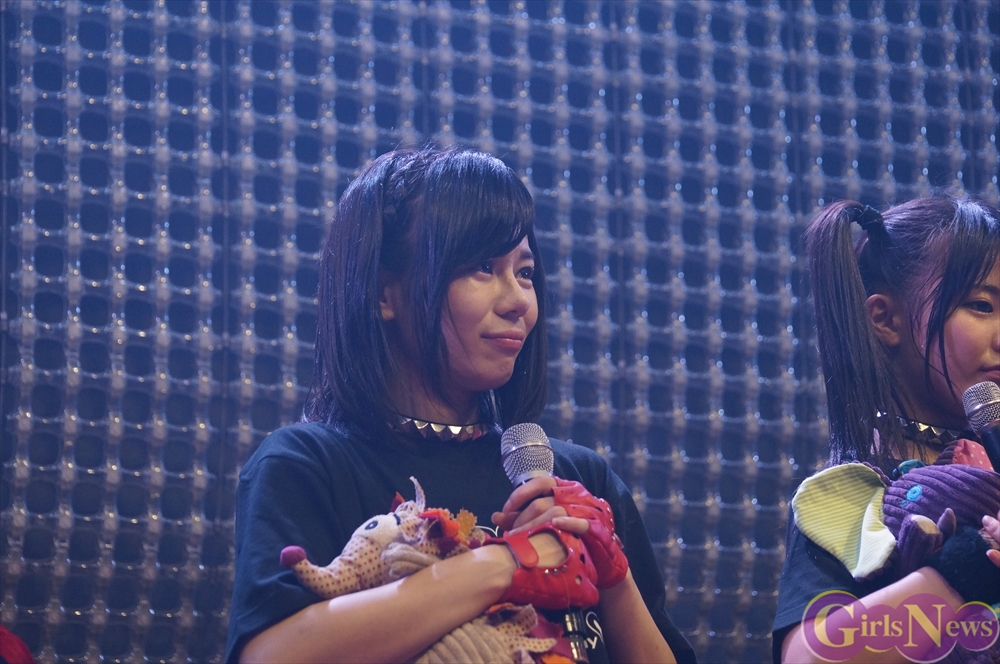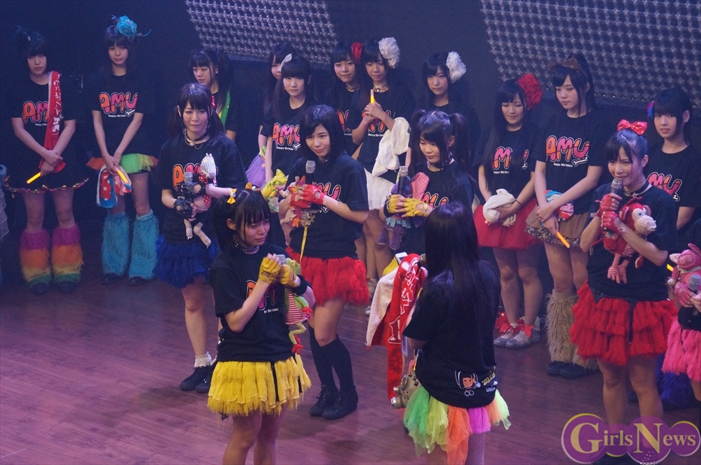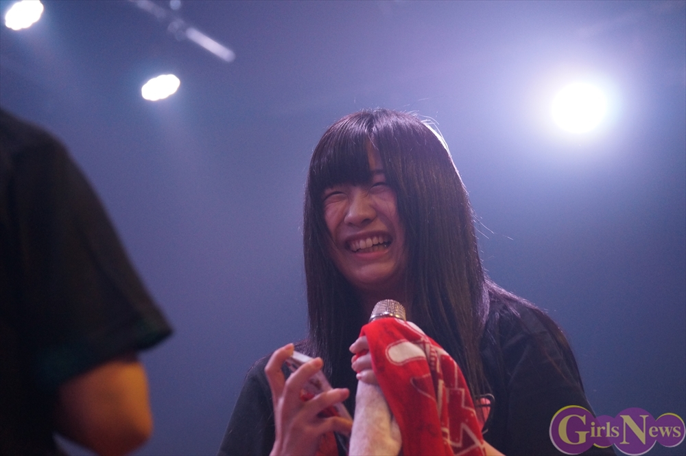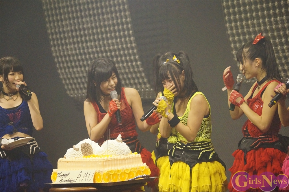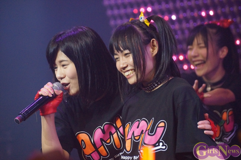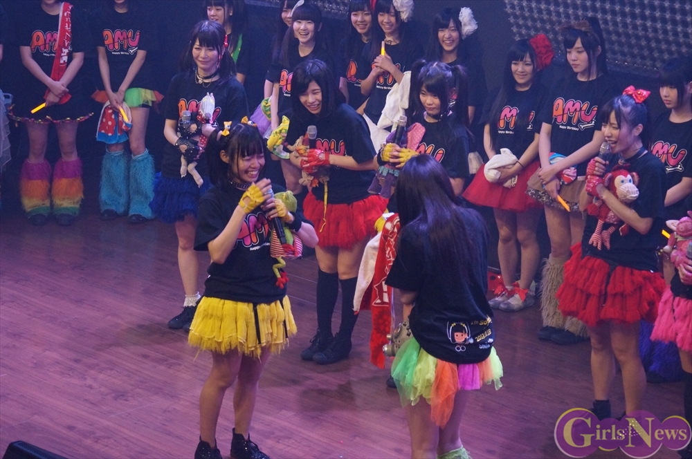 「あまりライブに出れなくて、残念な思いをさせてしまったかも知れないけど、ライブに出で会えた時には、『会えてうれしいよ』とか『出てくれてありがとう』とか言ってもらえてその言葉が自信になって明日も頑張ろうと思える言葉でした。お父さんやお母さんの反対を押し切って、1人で東京に出てきて、なかなか素直になれなくて、メンバーやスタッフにも自分の想いを伝えられなかったり、心の中に言いたいことを閉じ込めたりしたけど今日こうやって、みんなの前に立てて私の居場所はここだなって。みんなからお祝いのメッセージを頂けて愛夢は世界一の幸せ者です。」と感動の涙を見せながらも、しっかりと挨拶。会場からは割れんばかりの拍手が沸き起こった。