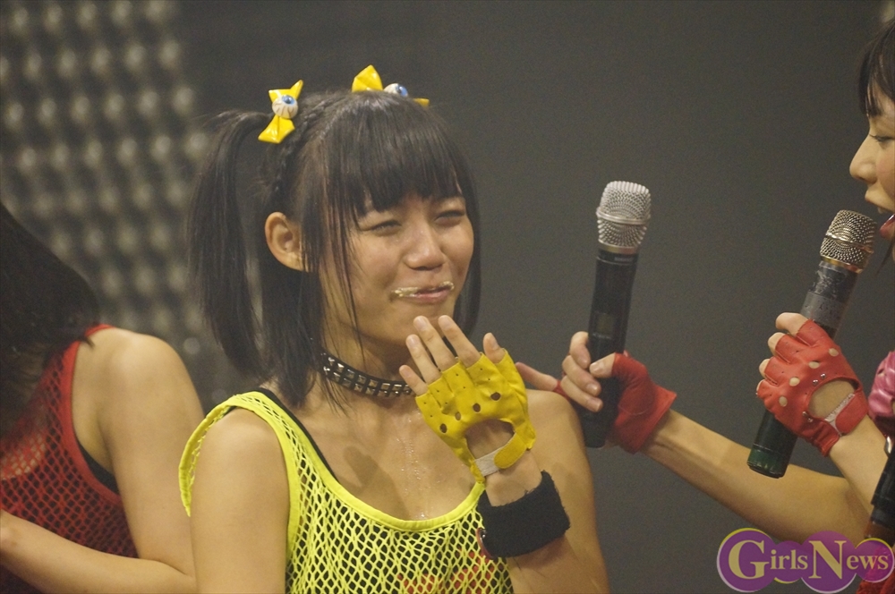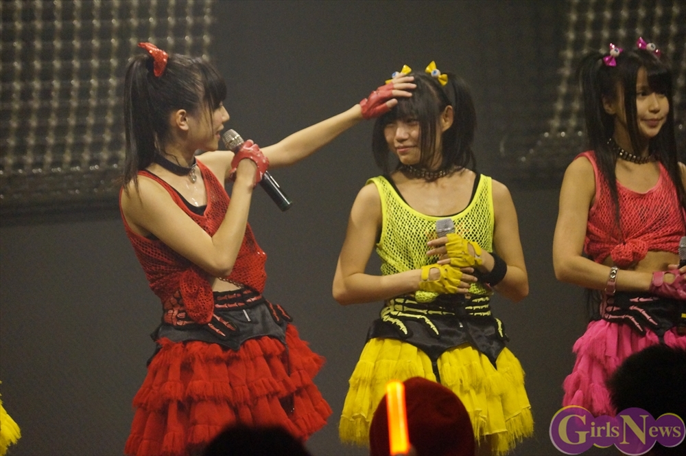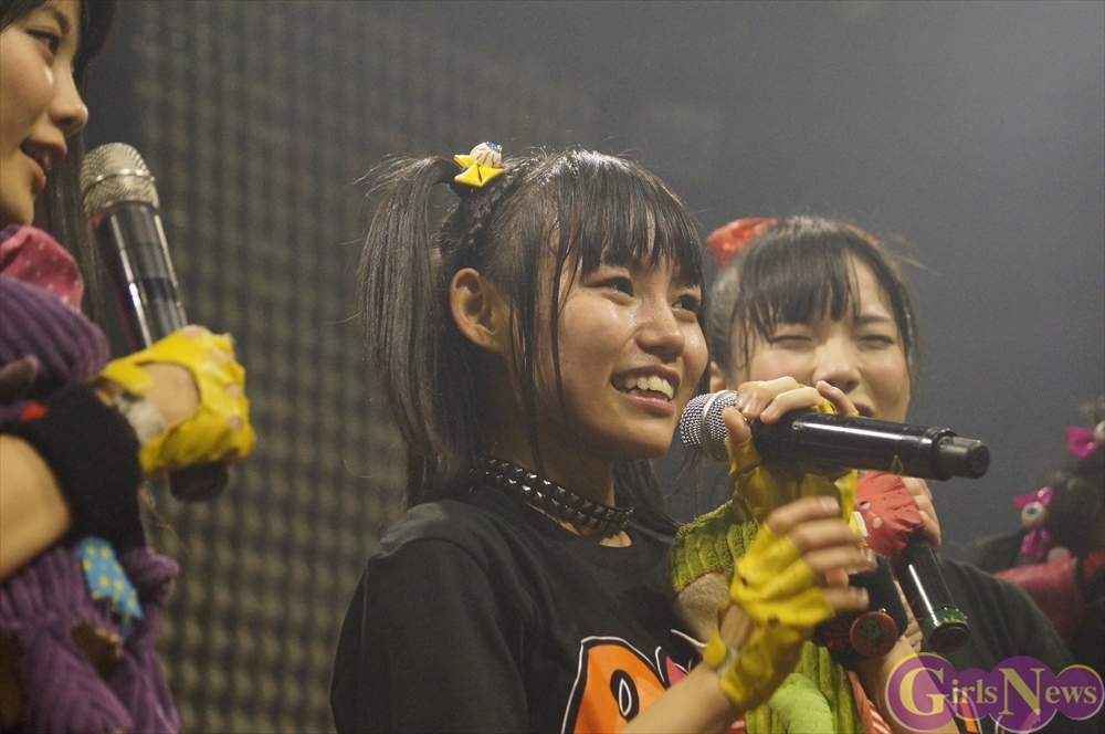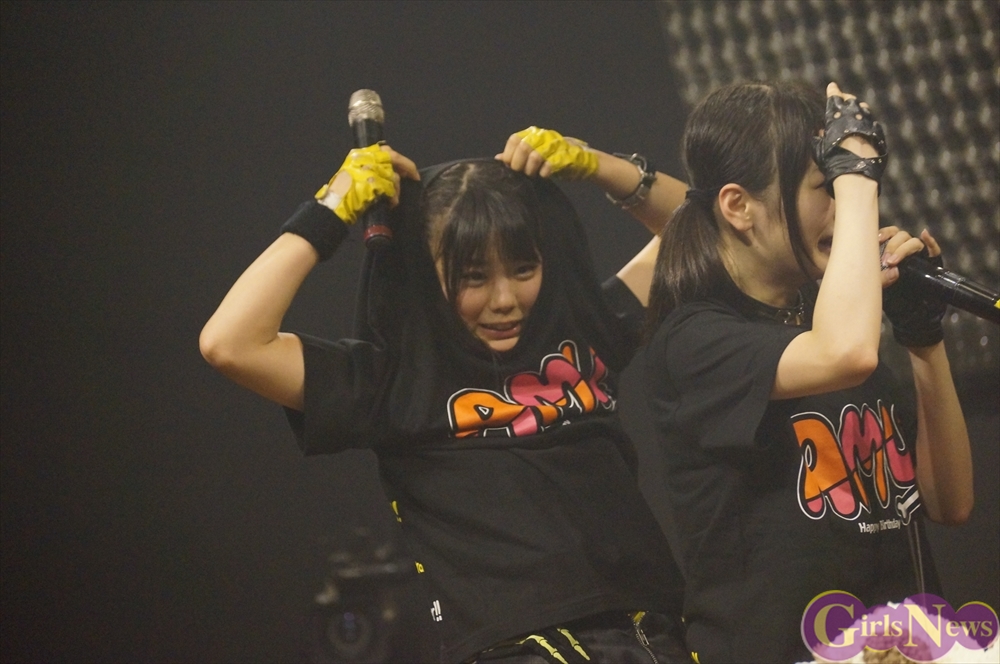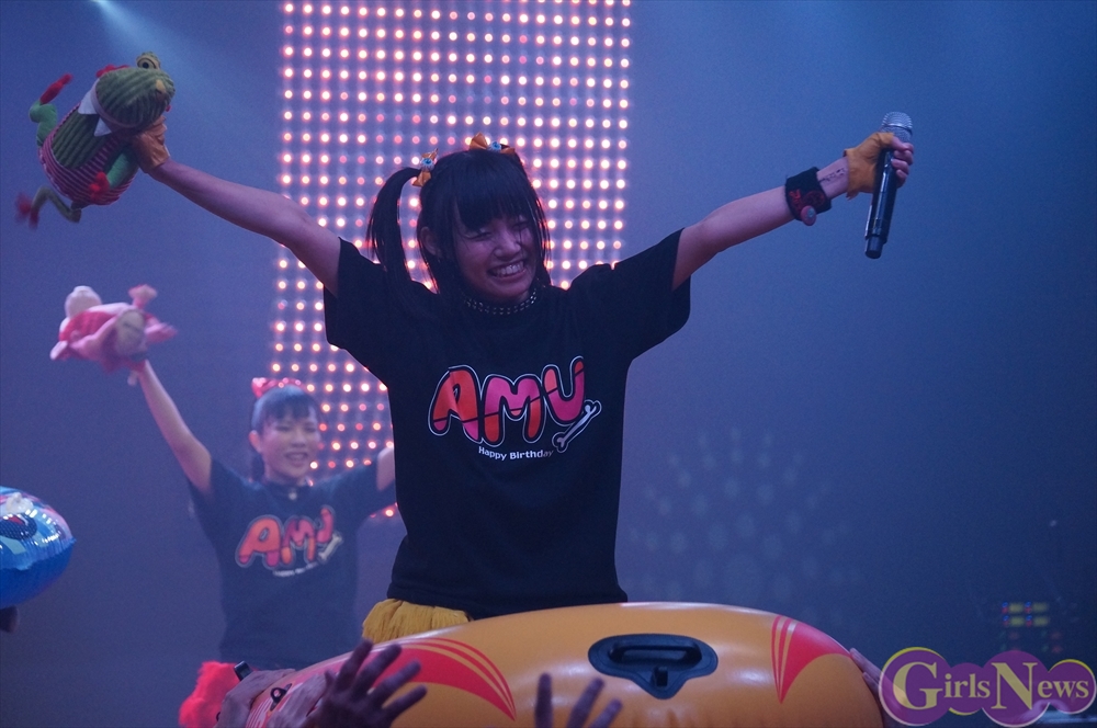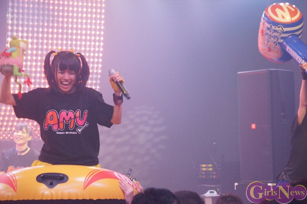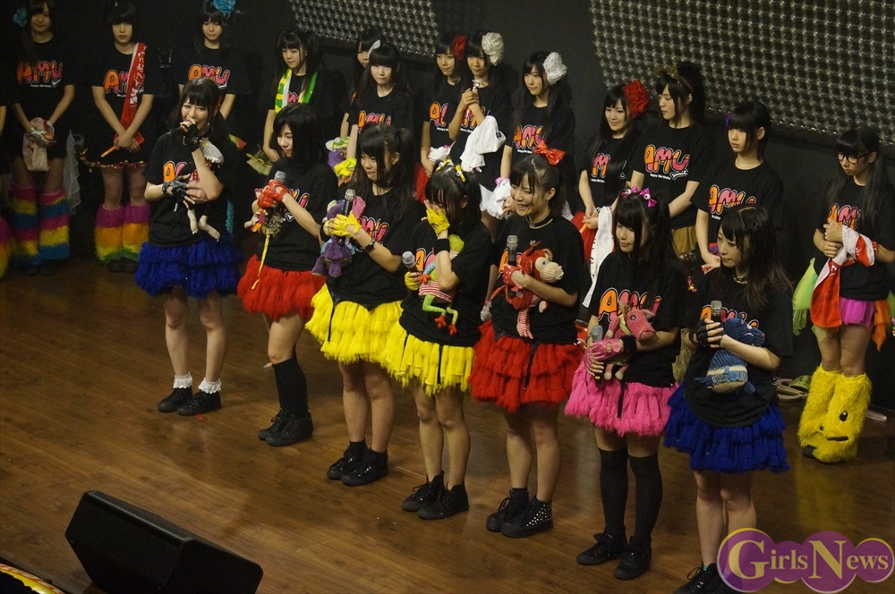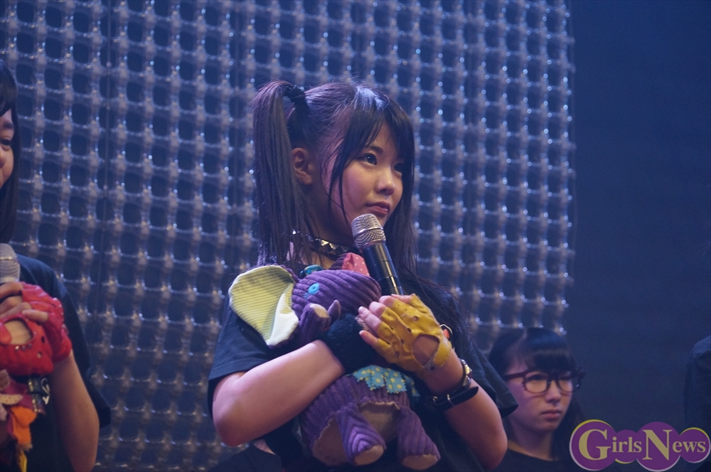 「あまりライブに出れなくて、残念な思いをさせてしまったかも知れないけど、ライブに出で会えた時には、『会えてうれしいよ』とか『出てくれてありがとう』とか言ってもらえてその言葉が自信になって明日も頑張ろうと思える言葉でした。お父さんやお母さんの反対を押し切って、1人で東京に出てきて、なかなか素直になれなくて、メンバーやスタッフにも自分の想いを伝えられなかったり、心の中に言いたいことを閉じ込めたりしたけど今日こうやって、みんなの前に立てて私の居場所はここだなって。みんなからお祝いのメッセージを頂けて愛夢は世界一の幸せ者です。」と感動の涙を見せながらも、しっかりと挨拶。会場からは割れんばかりの拍手が沸き起こった。