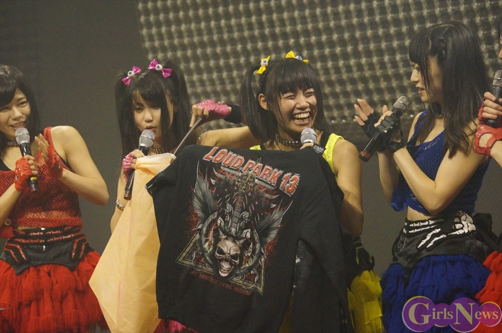 そしてファンからは大きな花束が進呈され、その他にもヘヴィメタル・フェスティバルであるLOUD PARK(ラウドパーク)のグッズや、ファンそれぞれの写真つきプロフィールの入ったアルバム、メンバー全員分の生誕Tシャツ、そして冬用のパジャマが最後に愛夢さんに贈られた。