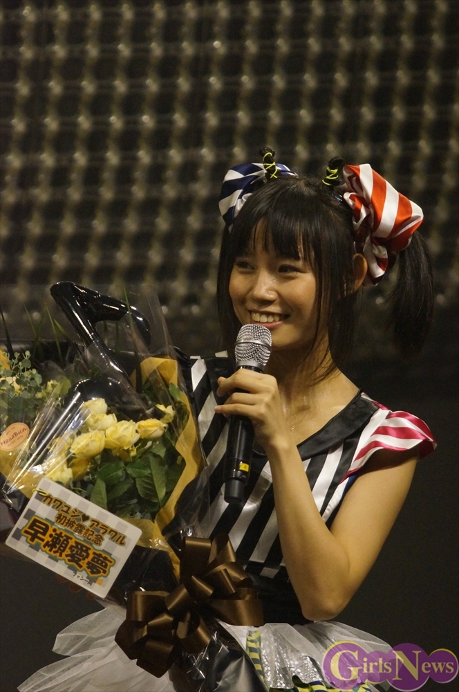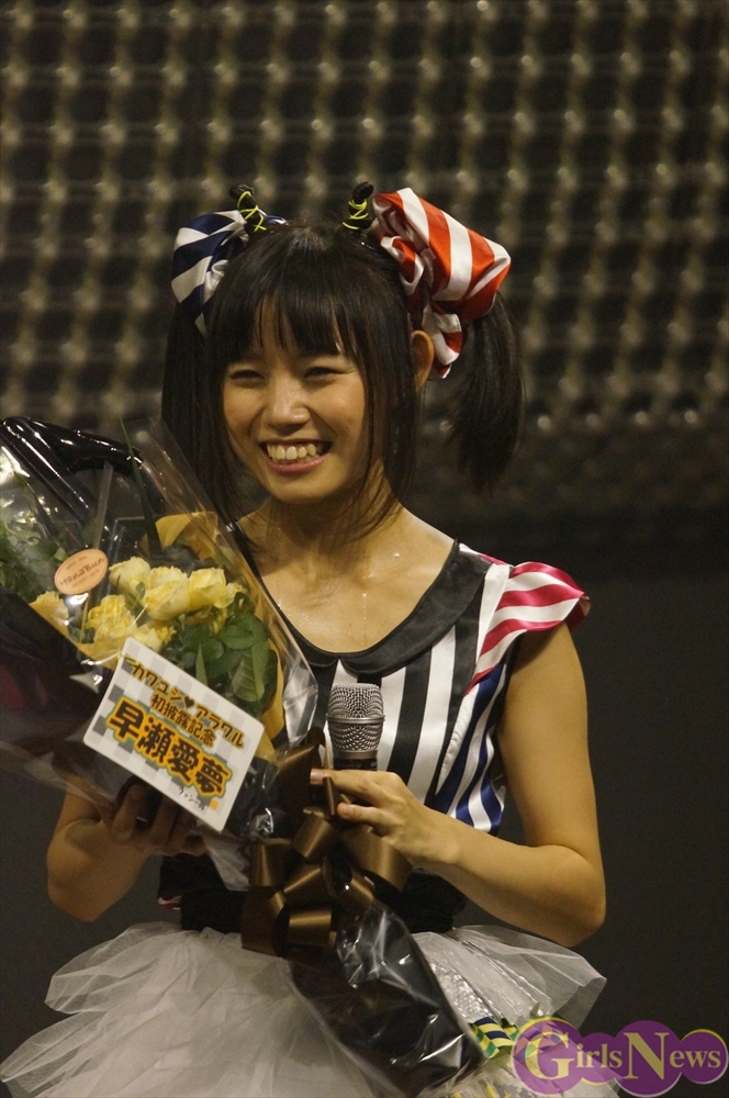 川村虹花さんは「今日は本番当日ということで、今日まですごい練習してきて、寝る間も惜しんでメンバー1人1人頑張って来たので、(ステージ)袖でみんなどきどきしてたんですけど、いざ出てみると沢山のファンの方が迎えてくださって、とっても楽しいライブになりました。中間発表では4位という結果だったんですけど、まだ残りはあるので、自分を信じて最後まであきらめないで頑張りたいと思います。」
