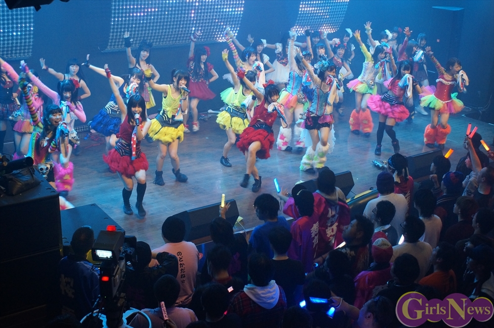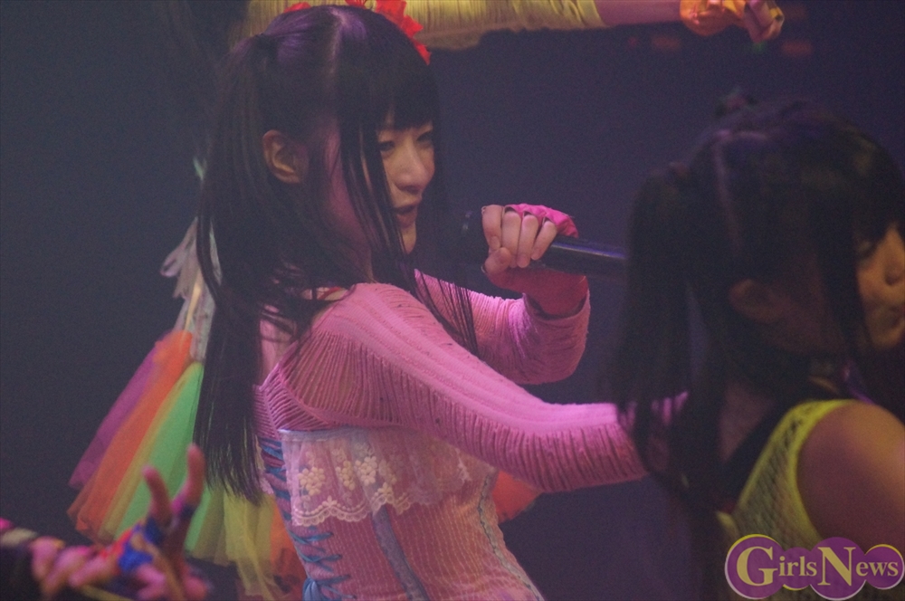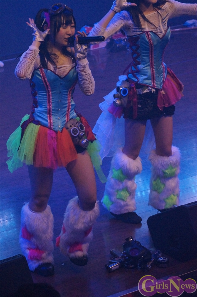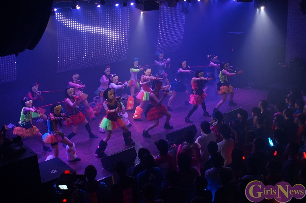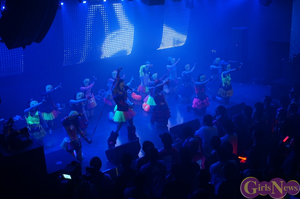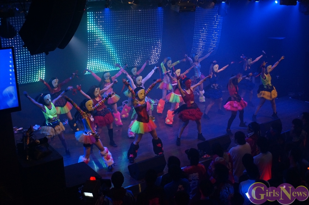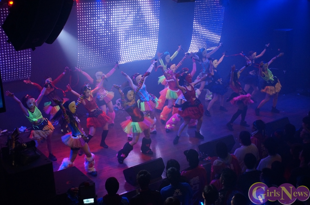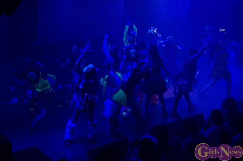 そして、ついにこの日、アリス十番とスチームガールズの2組が合体した仮面女子が「妄想日記」を初披露!この曲はシドのカバー曲だが、仮面女子では赤い糸を使った演出で、1つの赤い糸をメンバーがペアとなり繋がりながらダンスするという高いチームワークが要求されるパフォーマンスを見事に披露し、ファンの度肝を抜いた。