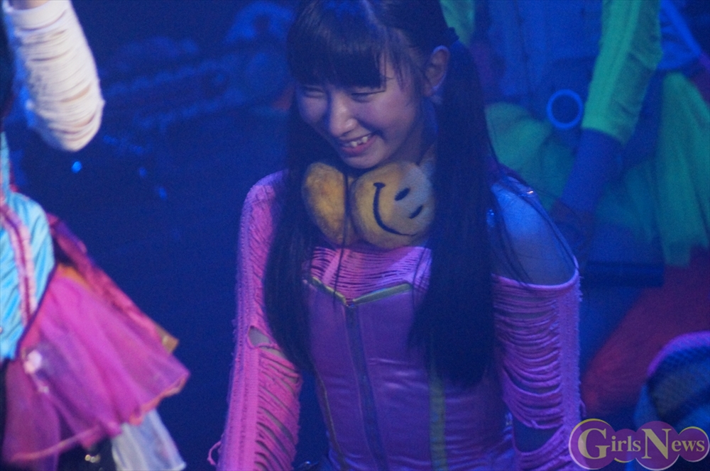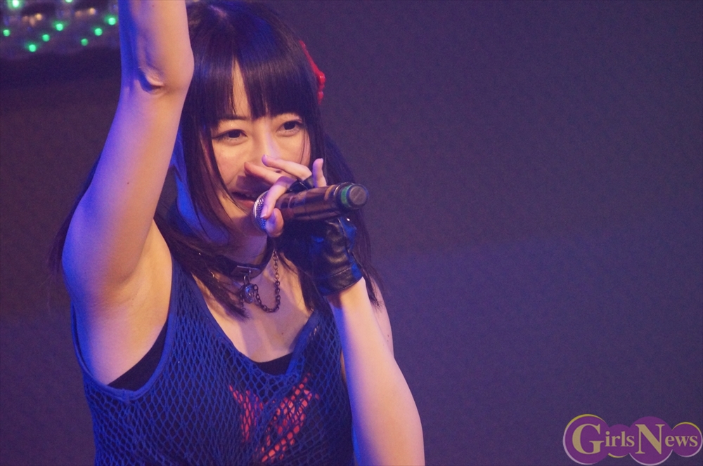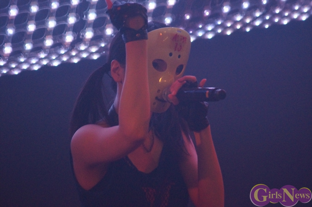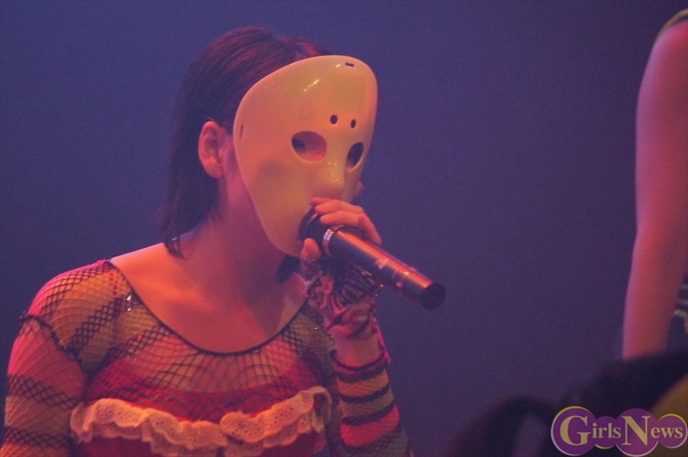 アリス十番のリーダー 桜のどかさんは「今日は仮面女子の妄想日記の初披露だったんですけど、披露するまで怖さでいっぱいで、シドさんの大切な曲なのでそれを私たち仮面女子が披露することでどういった反応を生むだろうとか、どうなるか不安でいっぱいでした。今回「妄想日記」を私たち仮面女子が私たちなりに精一杯、曲を聞いて曲を愛してそして今回初めて赤い糸を使うっていう今までの曲とは違ったチームプレーが必要になるパフォーマンスを行ったんですが、本番は今までの練習よりも良いステージになったと思います。そして、今日までCDの即売会を行っていました。売上3万枚を目標として、最初は全然売上が全然増えなくてこのままだと絶対ダメだと思ってたんですけど、まさかの今日5万枚超えをしました。ファンの皆様がここまで一生懸命私たちのために盛り上げて、いっぱい職場に配るよとか、みんなにも聞いてもらえるといいねとか沢山協力してくださったことに対して感謝でいっぱいです。今日は私たち仮面女子の持っている力を全て出しきった1日になったと思います。でも、まだまだ武道館に向けてもっともっと切磋琢磨していかなければいけない部分が沢山あるので、年末まで気を抜かずに精一杯頑張っていきたいと思います。今日はありがとうございます。」と感想を語る。