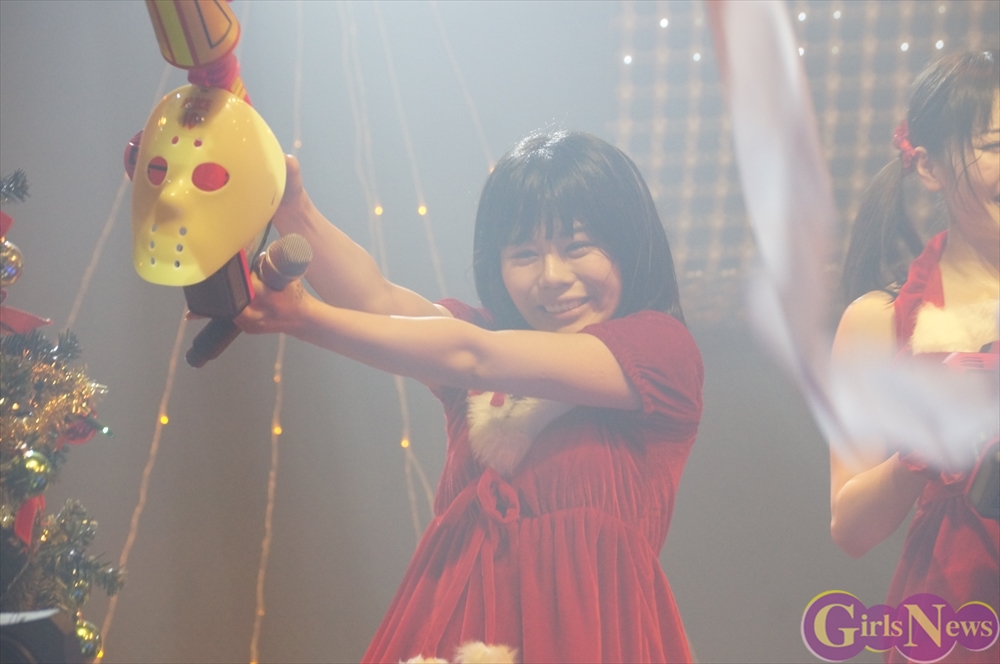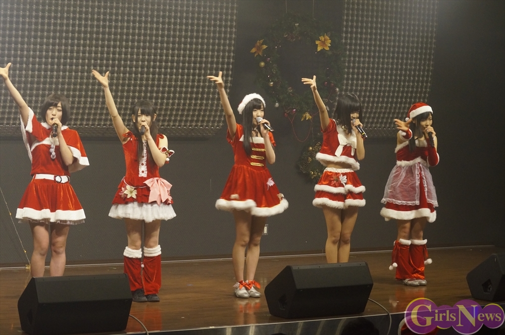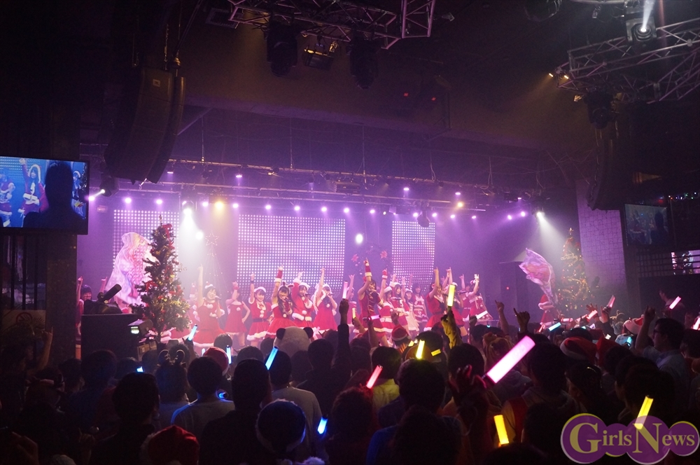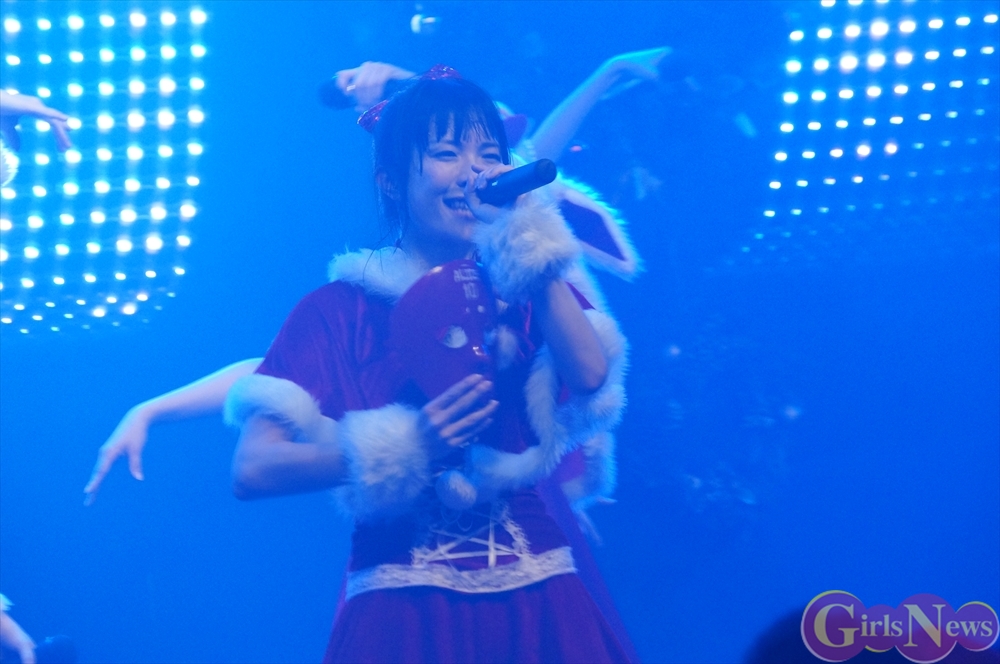この日、サンタのコスチュームに身を包んだ仮面女子たちは、クリスマスツリーやイルミネーションに彩られたP.A.R.M.Sのステージに立ち、27日の日本武道館で披露する仮面女子の新曲『大冒険☆』を披露。