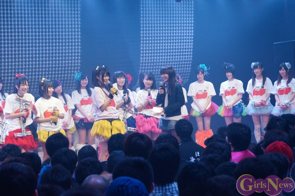 自己紹介MCで川村虹花さんは「たくさんの白いサイリウム、たくさんのファンの方が来てくれてありがとうございます。本当に嬉しいです。今日は楽しみたいと思います!」と挨拶。メンバーそれぞれから川村虹花さんのエピソードも披露されたが、その中でも立花あんなさんが「遠征で一緒に温泉に入っちゃいましたー!」とエピソードを披露すると、ファンからは歓声が上がった。