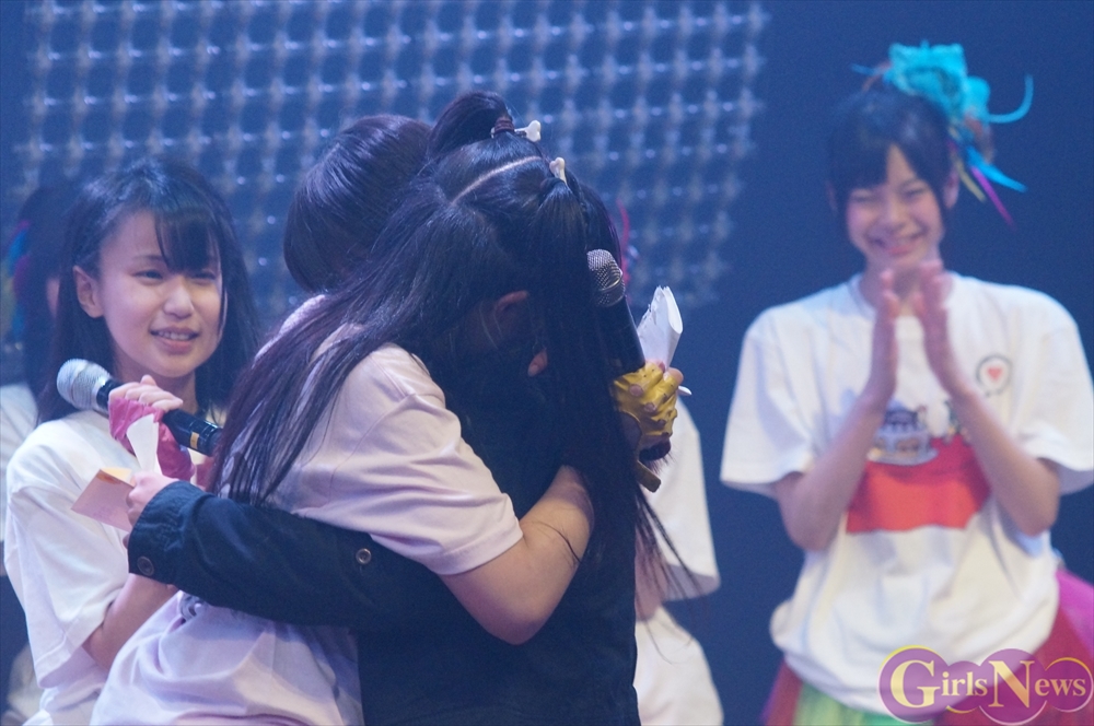 そして、「真・アドベンチャー」では川村虹花さんがゴムボートに乗って初航海!ここでサイリウム企画が発動し、会場は七色の輝きに包まれた。この虹色の光の海を航海した川村虹花さんは感動の涙。そして、涙を流しながらも堂々と航海を終えた川村虹花さんに対して、メンバーからは口々に「カッコ良かったよね」との声が聞かれ、川村虹花さんは「初めて人の上乗った。」と笑顔。
