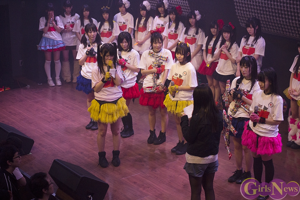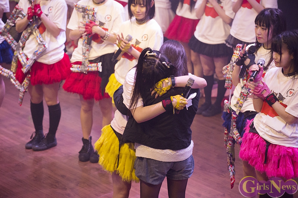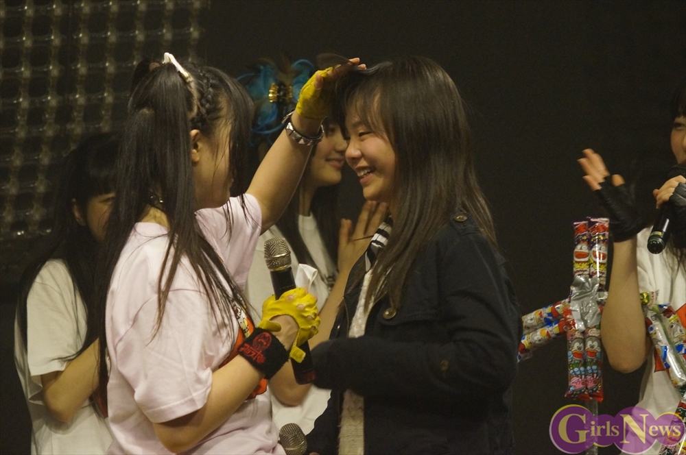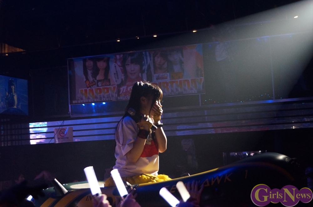 ライブ終了後、川村虹花さんを直撃すると「今日は今年すごく楽しみにしていた生誕祭だったので、すごくドキドキだったんですけど、たくさんのファンが来てくださって、最初の登場の時から白いサイリュームがいっぱい見えて、そこで泣きそうだったんですけど、メンバーからのサプライズとかもあって、うまい棒で“虹花”という字にして作ってくれたんですよ。ペーパーガンも虹色にしてくれて、初めての航海もして、“真・アドベンチャー”の落ちサビのあとにボートに乗せられて、どこに行くのかなと思ったら、落ちサビを歌った瞬間たくさんのサイリュームが見えて、全部が虹色になっていて、ボートの上からサイリュームが見えて、プレゼントとかもたくさんいただいて、ケーキも愛犬のチョコで、本当に川村軍団の愛がすごく感じられる生誕祭でした。しかも最後に妹が登場してきたのがすごいビックリして、妹と離れてから半年くらい会ってなくて、全く会う時間が無くて離れ離れだったんですけど、今日久しぶりに会って、妹が手紙を読んでくれて、自然と涙が出て来て、でもすごい妹に会えて嬉しかったです。」と感想を語っていた。
