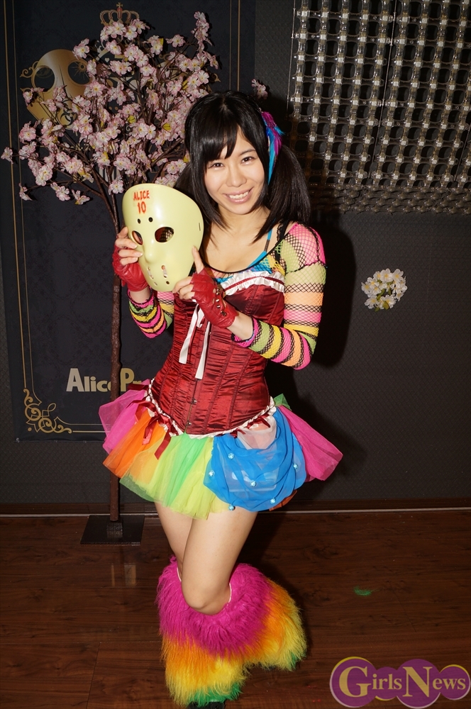 ライブ終了後、森カノンさんを直撃すると、「music.jpのダウンロードで見事1位になりまして、今回、仮面女子の初披露時の落ちサビを私が歌うことになったんですけど、この“LOVE is ALL”の楽曲はとっても可愛らしい曲で、今までの仮面女子に無いような恋する女の子の気持ちを歌った曲で、とってもキュンキュンするような曲なんですけど、振り付けもとっても可愛くて、いっぱいハートがあって、しかも落ちサビを今回私が歌えるということで、とてもとても幸せでした。これからもずっとこの曲は私が落ちサビを歌えることになったので、それが一番の衝撃でした。仮面女子の中ではそれぞれのユニットのセンターの子しか落ちサビをもらって無いので、その中を私が歌えるのは光栄なことなので、これからも大切にしていきたいと思います。」と感想を語っていた。