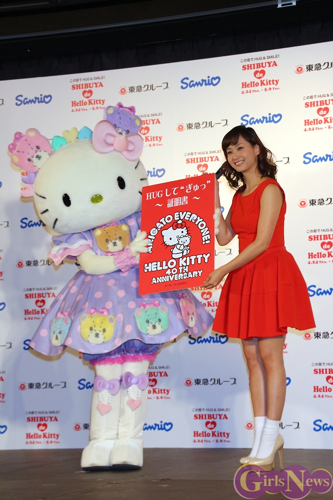 渋谷でハローキティとHUGしよう! 藤本美貴がPR大使 “娘ができたら全身をキティちゃんに!”