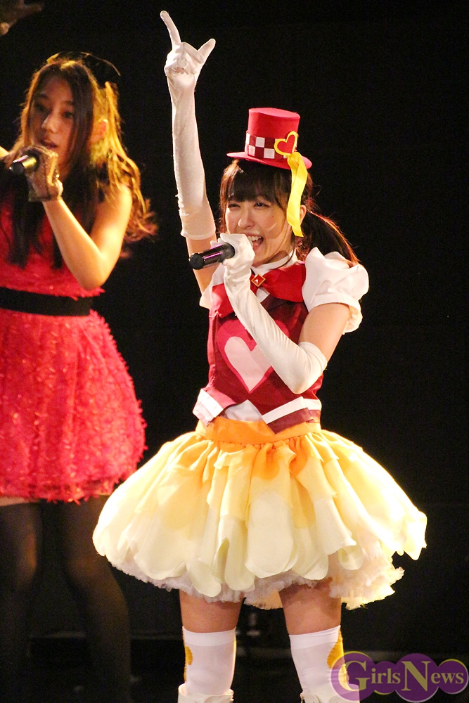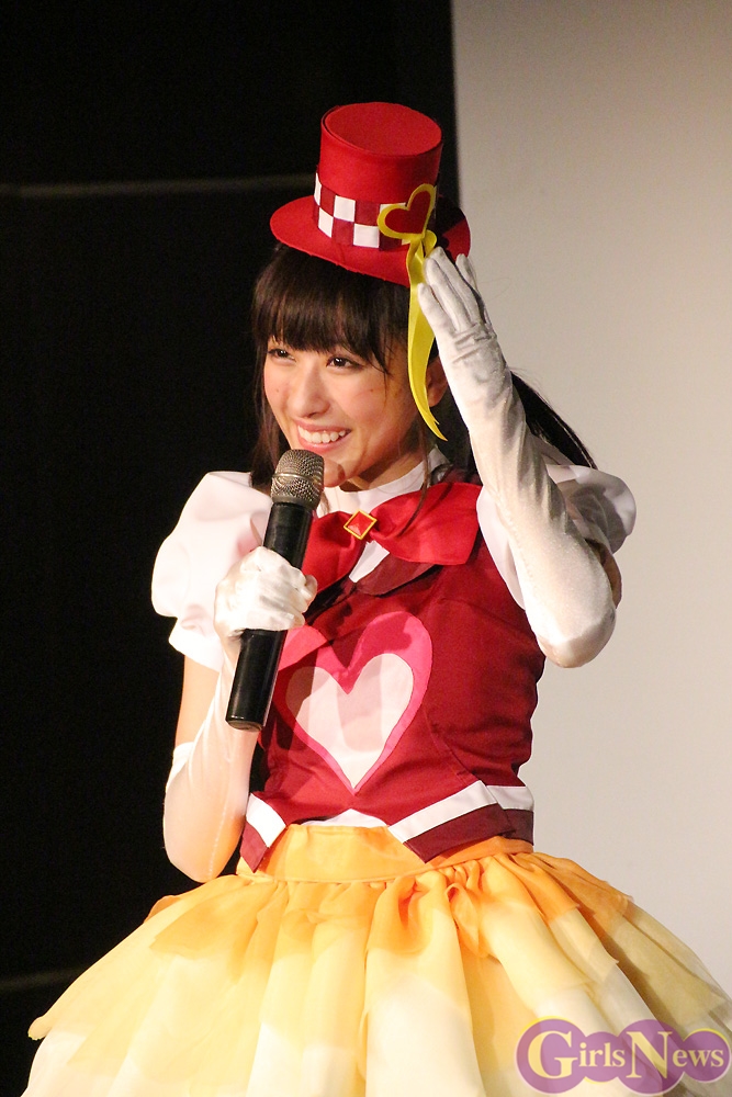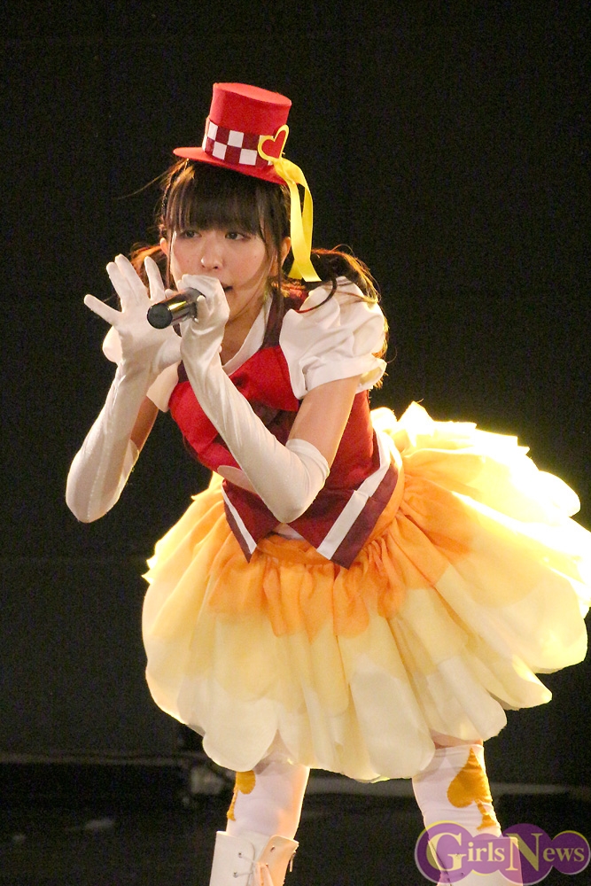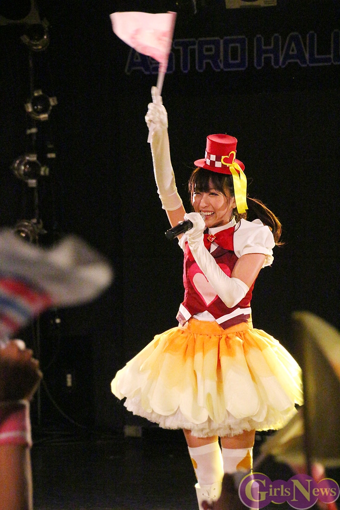 歌い終えたまいにゃは「サイリウム、めっちゃ綺麗でした!」と喜び、オレンジのサイリウムに合わせたような新衣装を「ハットが付いていたり、胸にキューティーハニーのようなハートマークがついてます!」と自慢気にアピールした。