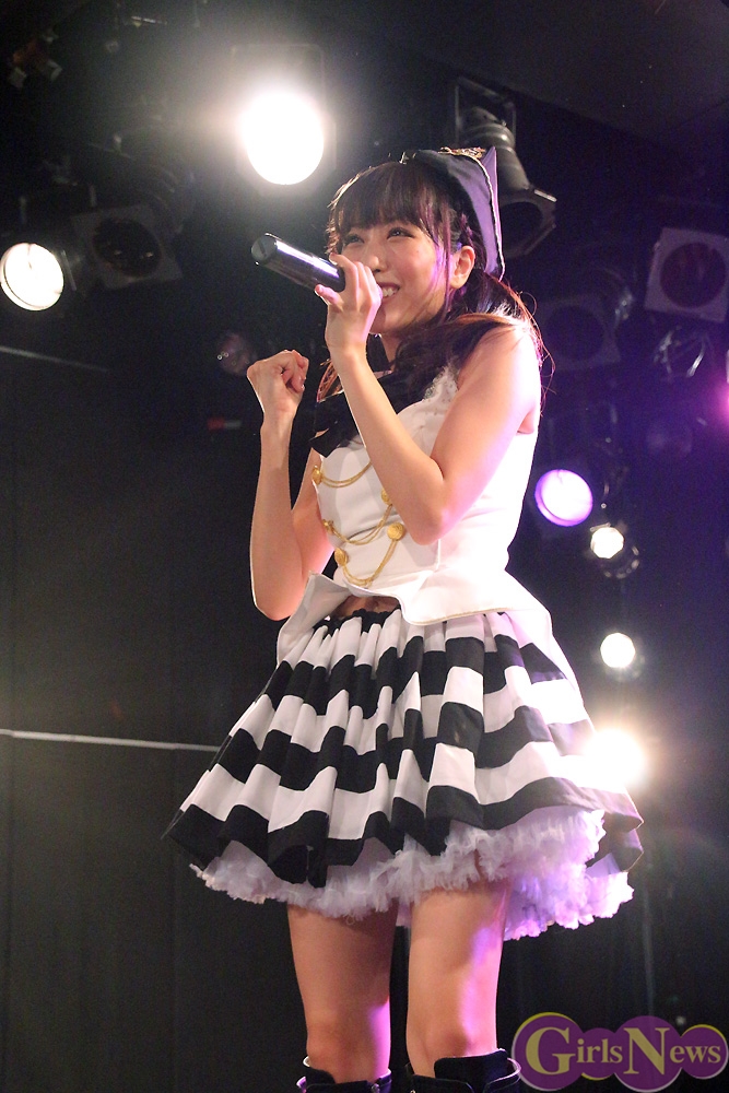 再びのMCで誕生日の話題に戻って、「12時になった瞬間に誰かから連絡が来るかとケータイを握りしめていたんですが、12時ちょうどに来た連絡はゼロ件でした。」とまいにゃはがっかり。「でも、数少ないお友達の伊藤桃ちゃんからと、アフィリア・サーガのルイズさんからお祝いのメッセージと一緒にかわいいウサギちゃんが顔面ケーキをブシャ!ってやってるスタンプが付いていて高まりました!私ね、誕生日に顔面ケーキをされるのが夢なんですよ。」と言うと、会場は“やって、やって!”と言わんばかりの拍手がはやし立ててた。まいにゃは戸惑いながら「やりたいのは山々なんですけど、ケーキがないんで。あっても、ダメダメ!ライブが続けられなくなっちゃう。」と首を振り「次の曲が最後の曲になります。」と告げた。