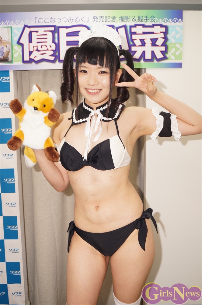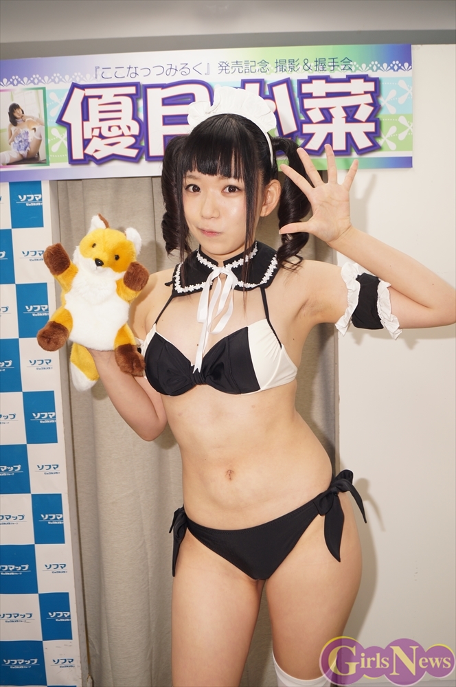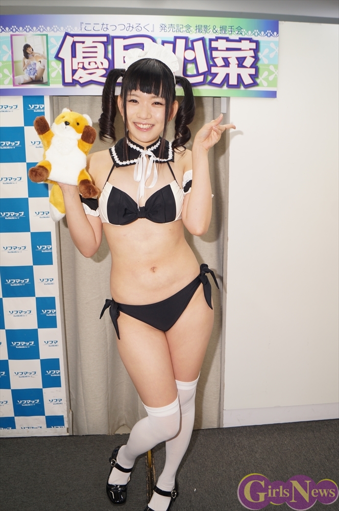 8月31日、グラビアアイドルの優月心菜さんの1stDVD「ここなっつみるく」(BNS)の発売を記念し、秋葉原のソフマップモバイル館でイベントが行われた。