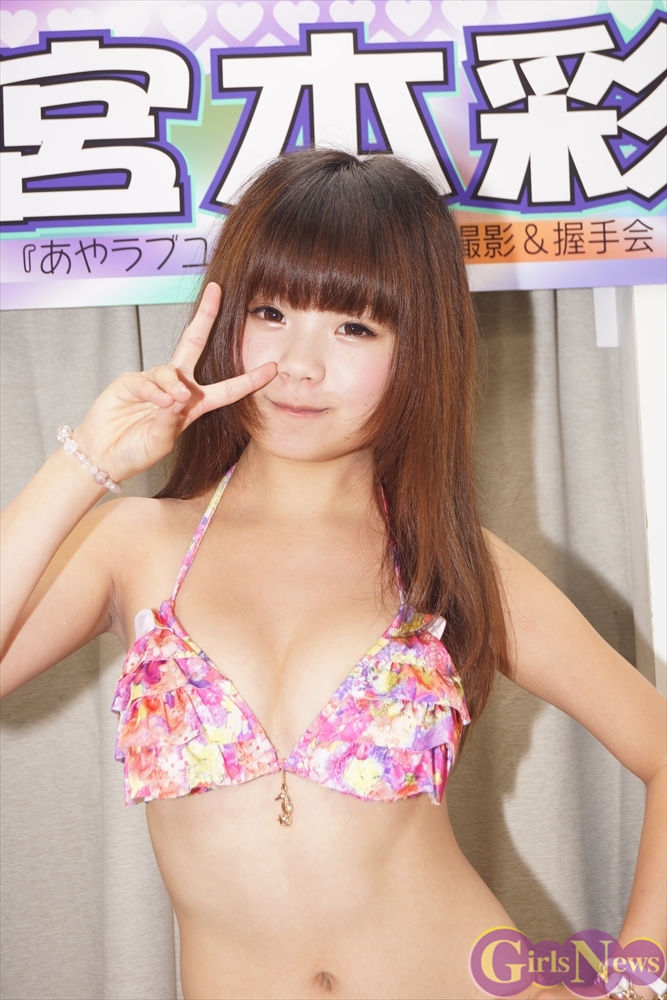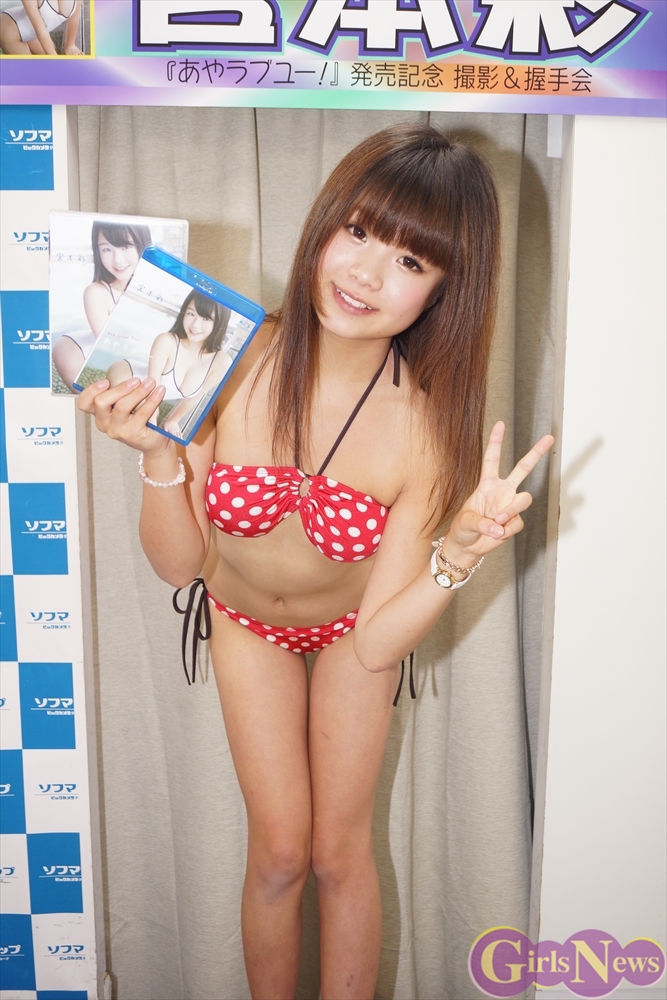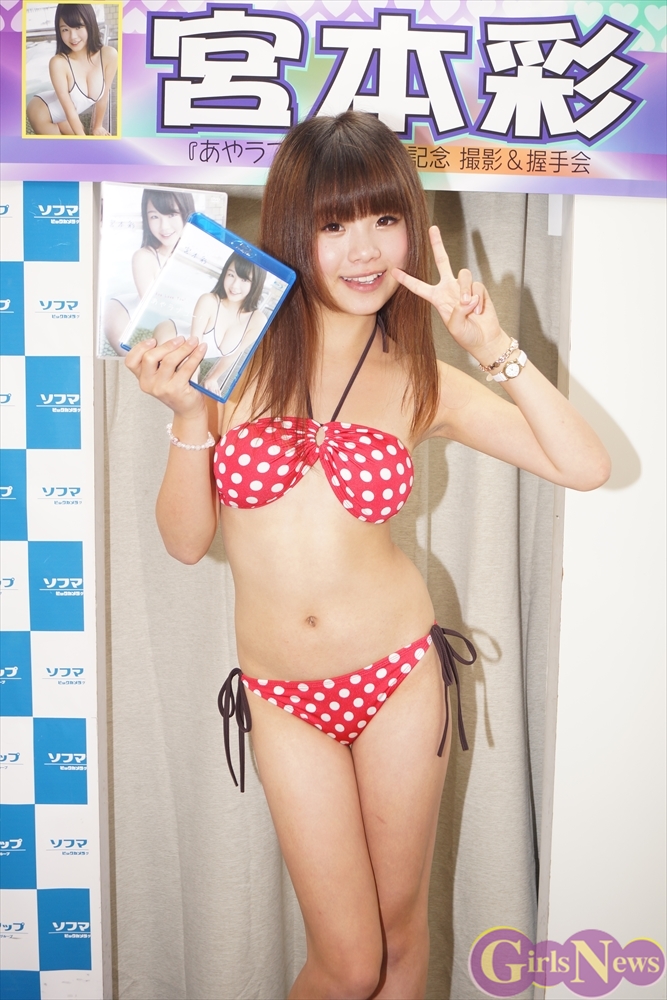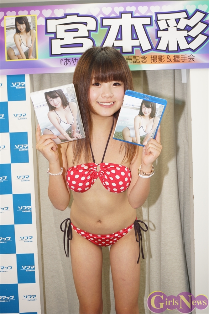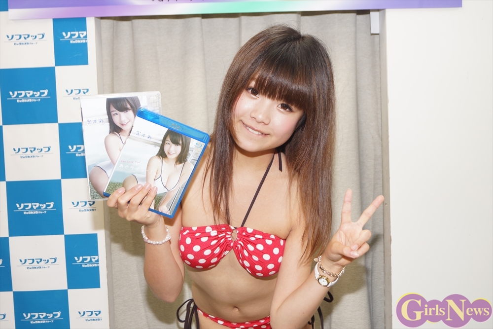 9月7日、グラビアアイドルの宮本彩さんのDVD&Blu-ray「あやラブユー!」(シャイニングスター)の発売を記念して、秋葉原のソフマップモバイル館でイベントが行われた。