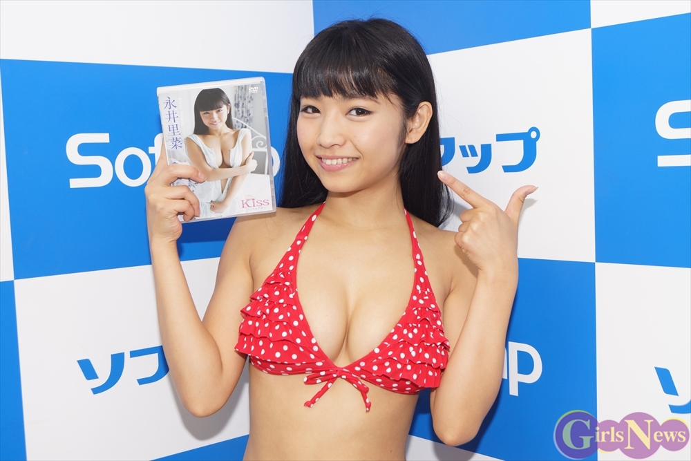 10月5日、グラビアアイドルの永井里菜さんの13枚目のDVD「Kiss ~ご主人さまへ~」(イーネット・フロンティア)の発売記念イベントがソフマップアミューズメント館で行われた。