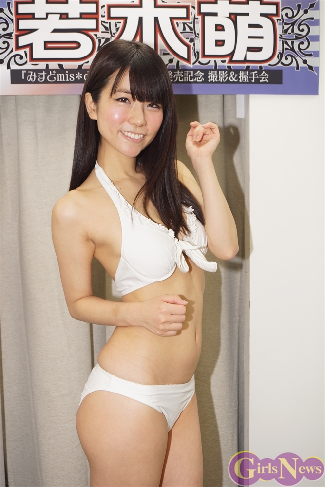 11月3日、グラビアアイドルの若木萌さんの7年ぶり3枚目のDVD「みすどmis*dol 萌の再発見」(M.B.Dメディアブランド)の発売記念イベントが秋葉原のソフマップモバイル館で行われた。
