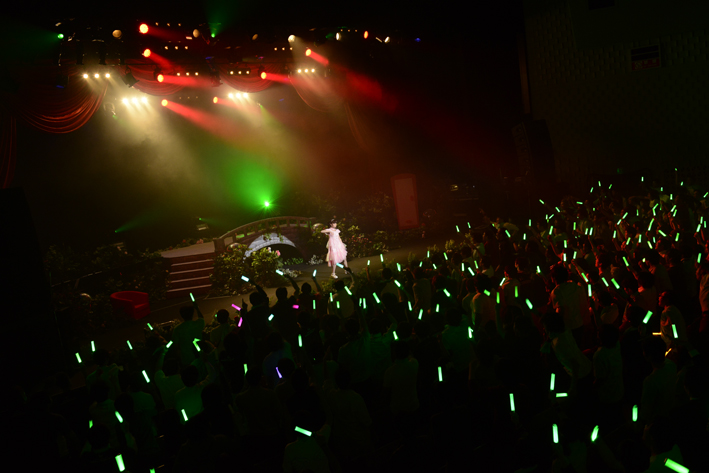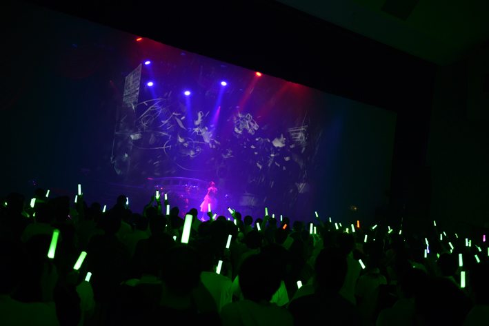 続けて、春奈るなさんは「みんなまだまだ行くよ!」とファンを煽ると、会場内はピンク色のサイリウム1色になり「アイヲウタエ」を熱唱しファンはヒートアップ。