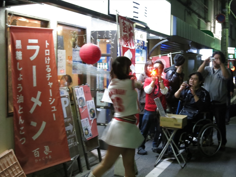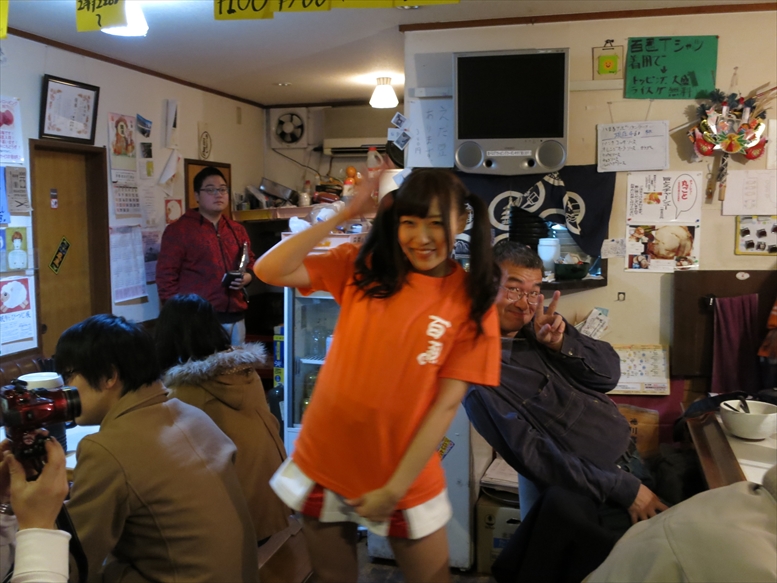イベント開催スタート17:00前に、既に店頭前には、彼女と一緒にヒット祈願をしようという、ファンや地元の常連客で列をなしていた。