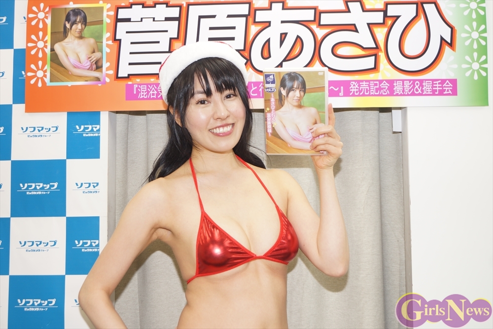 12月20日、三十路グラドルの菅原あさひさんの1stDVD「混浴気分vol.15~あさひと行く温泉旅模様~」(オルスタックソフト)の発売記念イベントが秋葉原のソフマップモバイル館で行われた。
